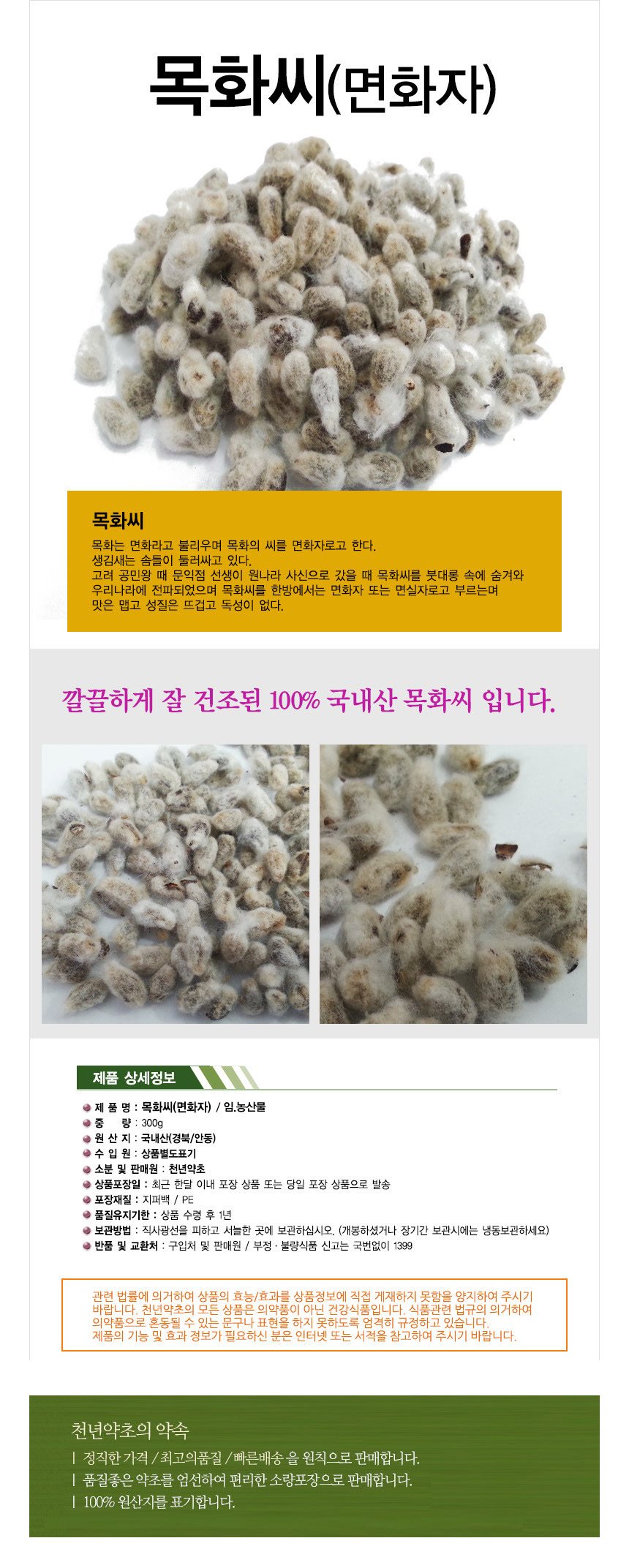 • 100% 국내산 면화자(목화씨)입니다.