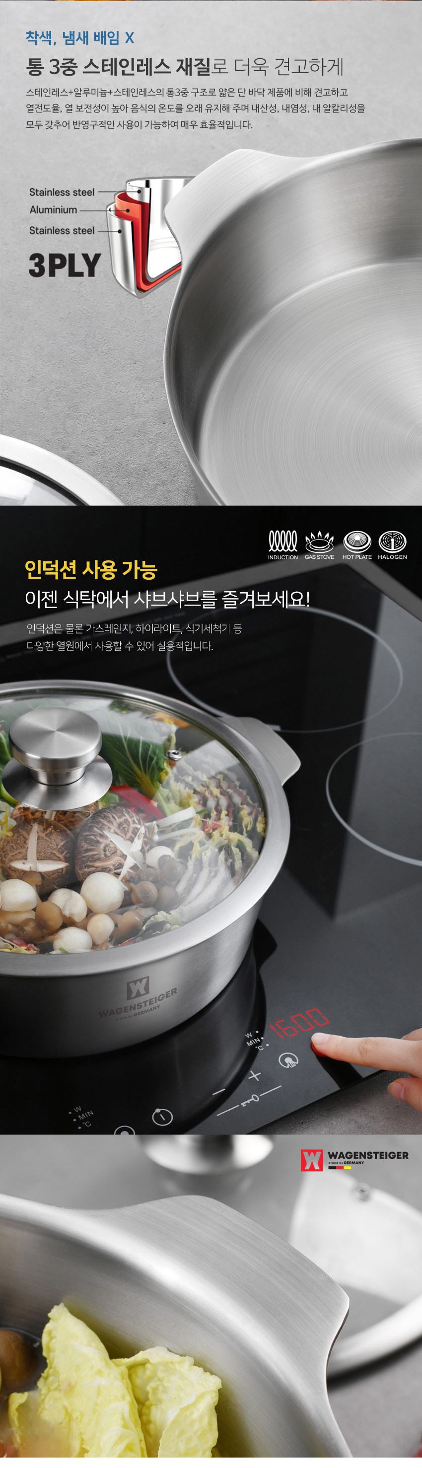 바겐슈타이거 통3중 나베 파보일 스텐 냄비 26cm