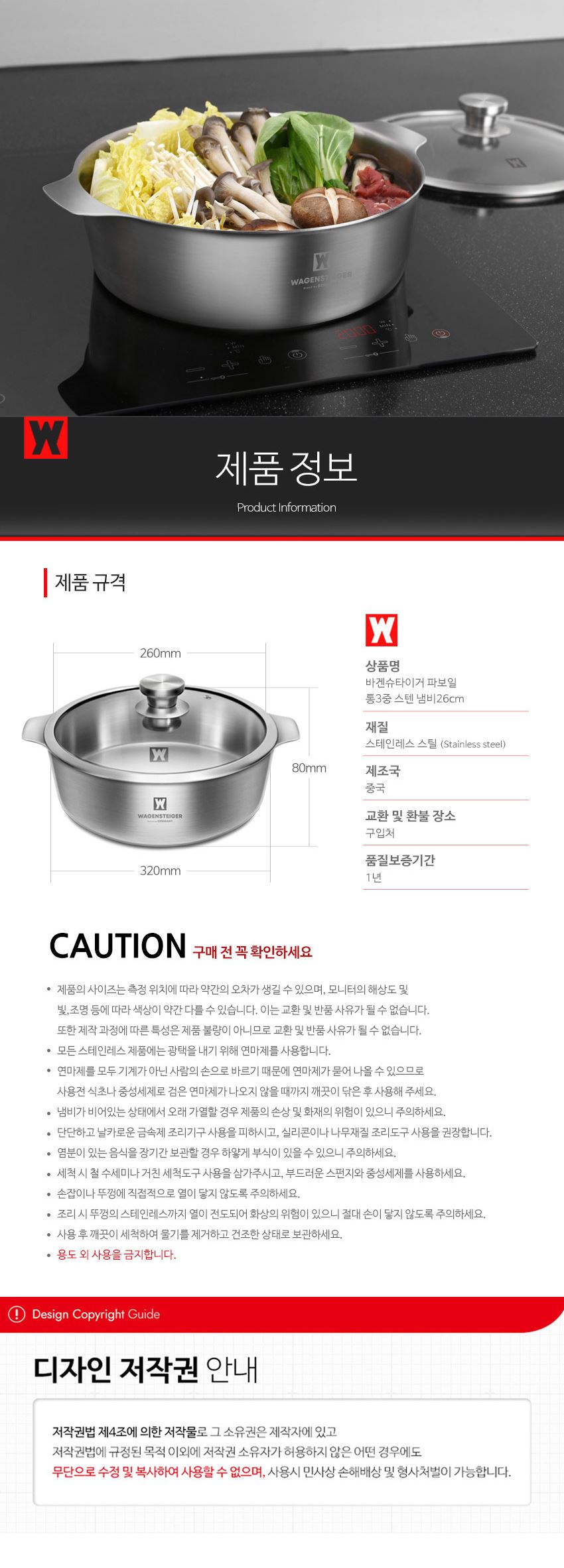 품명 및 모델명 바겐슈타이거 통3중 나베 파보일 스텐 냄비 26cm