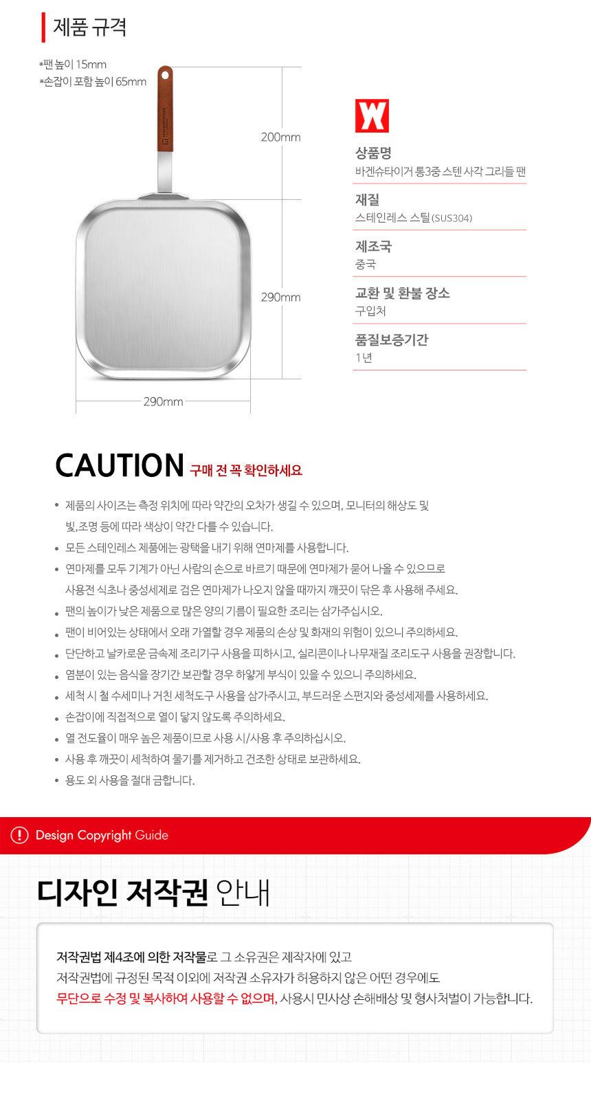 품명 및 모델명 바겐슈타이거 통3중 스텐 사각 그리들팬
