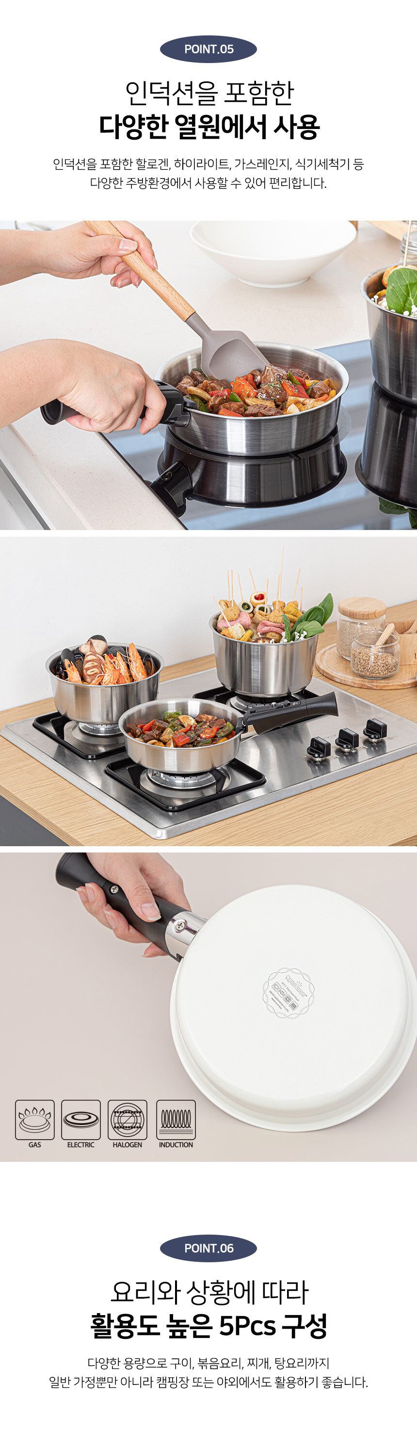 구성품 냄비 대+중+소+뚜껑+탈착실 핸들