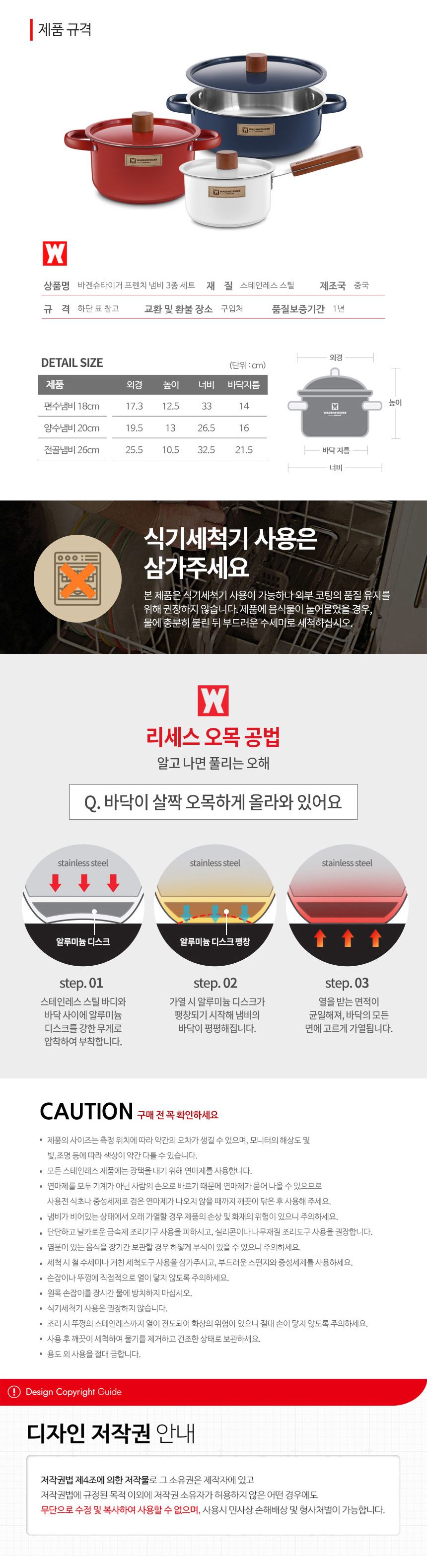 품명 및 모델명 바겐슈타이거 프렌치 스텐 세라믹 냄비 3종 세트