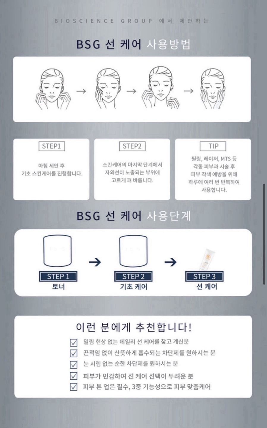BSG 선 케어 (SPF50+PA++++) 50ml 자외선차단, 미백, 주름개선 3중 기능성 에스테틱 선크림 / 슈실장의뷰티랩님의 스토어 / 디비디비 / 구매하기 / 특가할인
