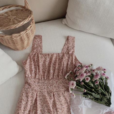 오픈숄더 플라워원피스 핑크