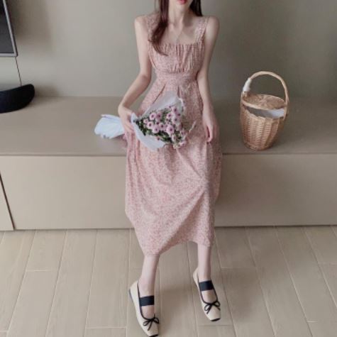 • 오픈숄더 플라워원피스 핑크