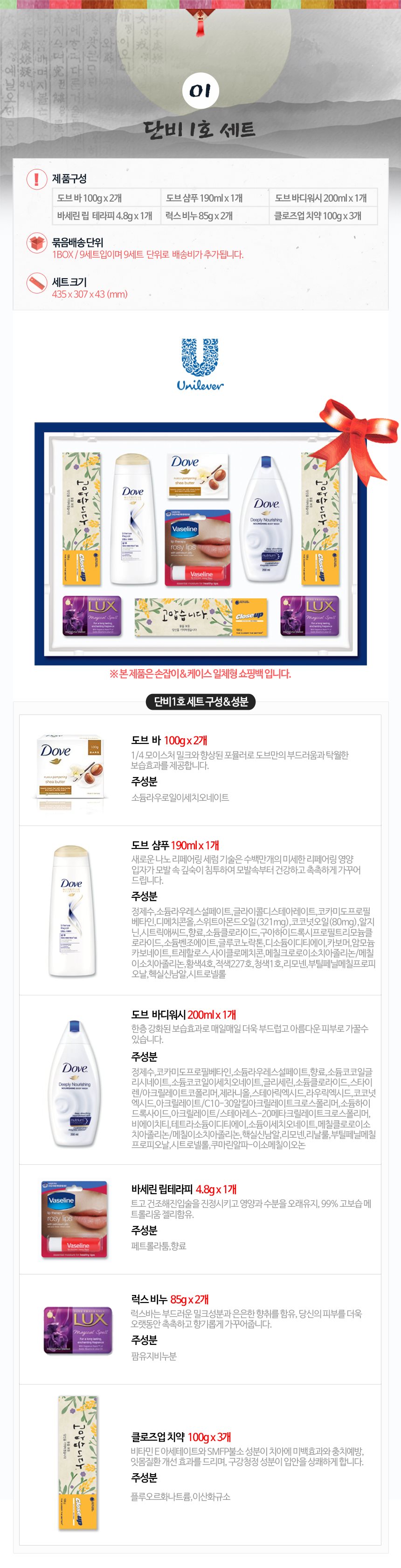 • 유니레버 단비1호 선물세트/추석/명절/기프트/샴푸/린스/바세린/도브/칫솔/치약/비누/세안제/폼클렌징/립밤