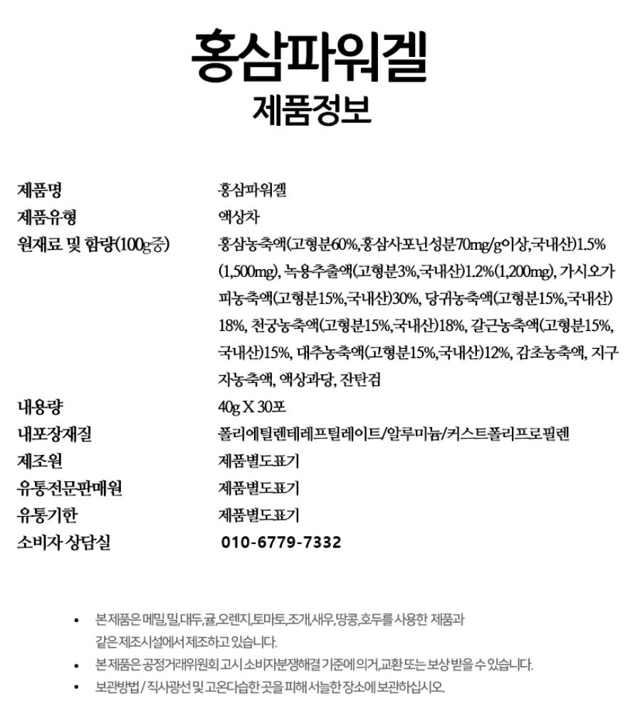 홍삼파워겔 (40gx30p) / jabdaguri1님의 스토어 / 디비디비 / 구매하기 / 특가할인