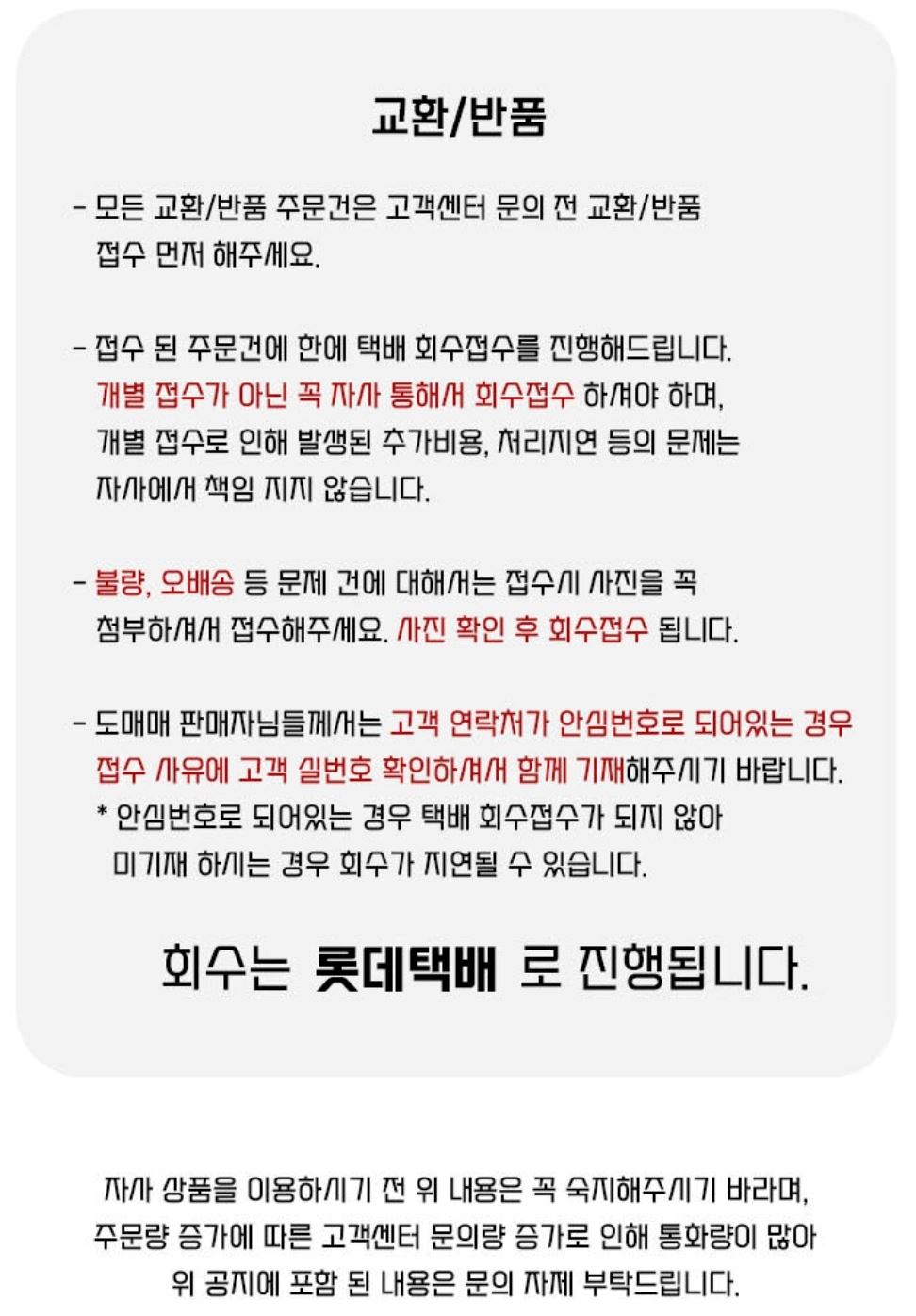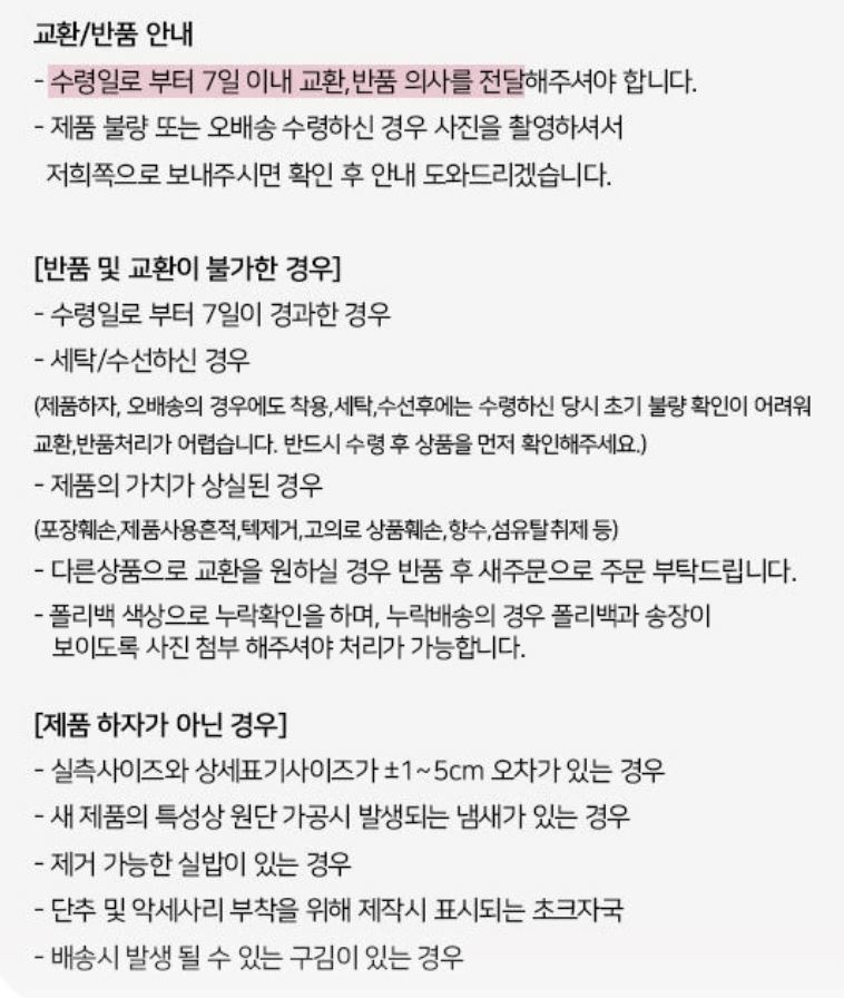 ㆍ 반품/교환 시 고객님 귀책사유로 인해 수거가 지연될 경우에는 반품이 제한될 수 있습니다.