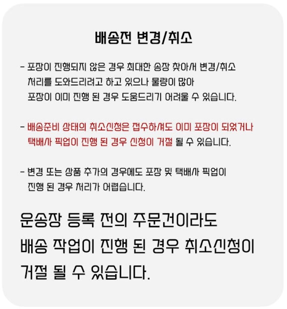 * 각 상품별로 아래와 같은 사유로 취소/반품이 제한 될 수 있습니다.