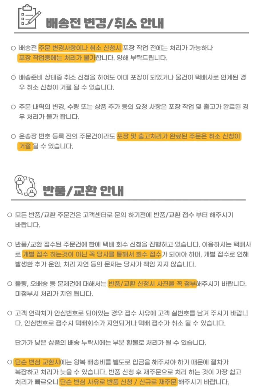 ㆍ 반품, 교환을 원하시는 경우 1:1문의나 주문서에 안내 해 드리고 있는 연락처로 연락 주시면 신속한 처리가 가능합니다.
