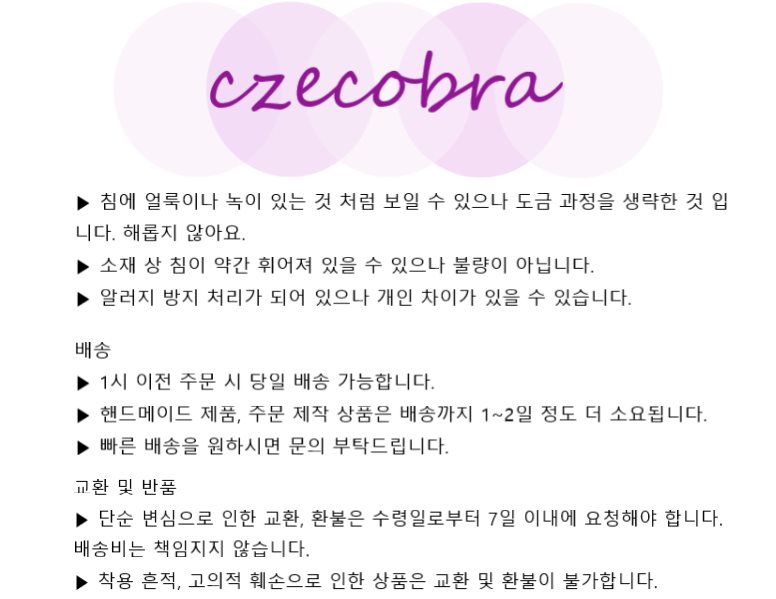 ㆍ 반품/교환 시 고객님 귀책사유로 인해 수거가 지연될 경우에는 반품이 제한될 수 있습니다.