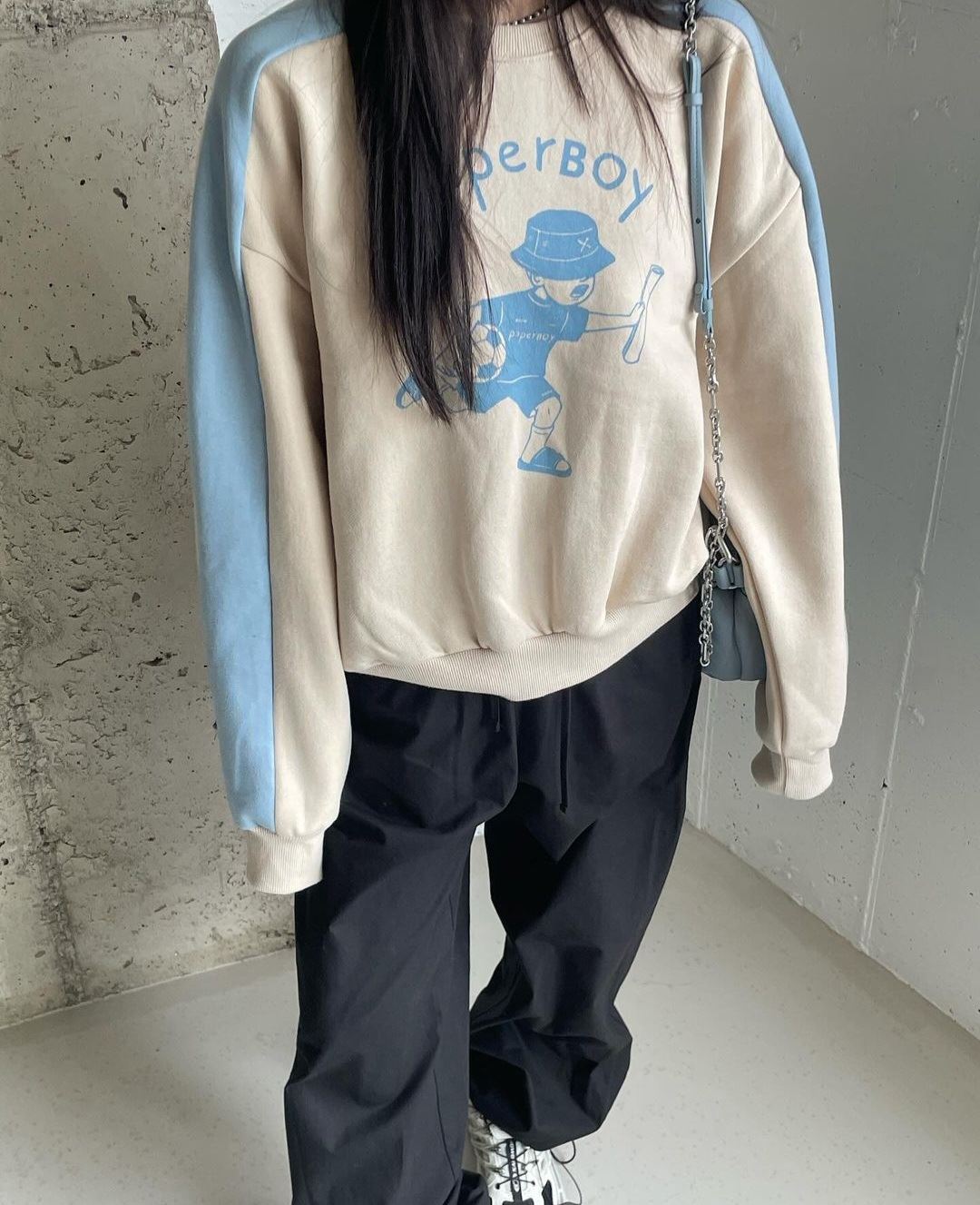 • 프린팅 나염 배색 기모 맨투맨(3color)