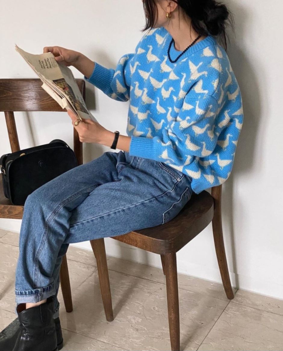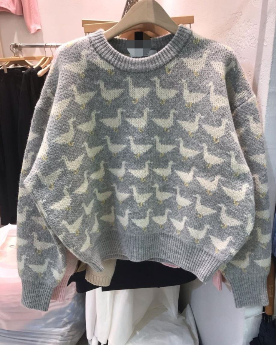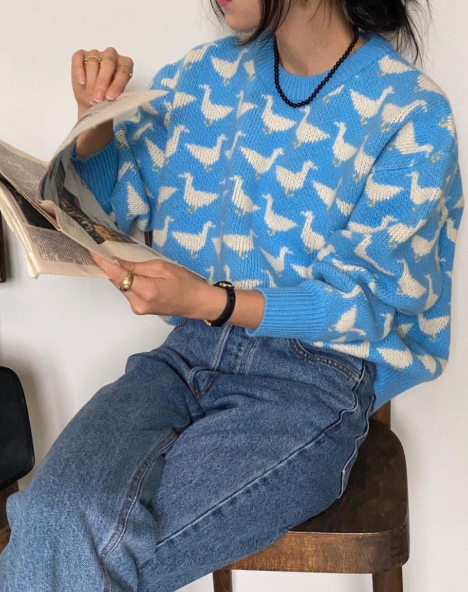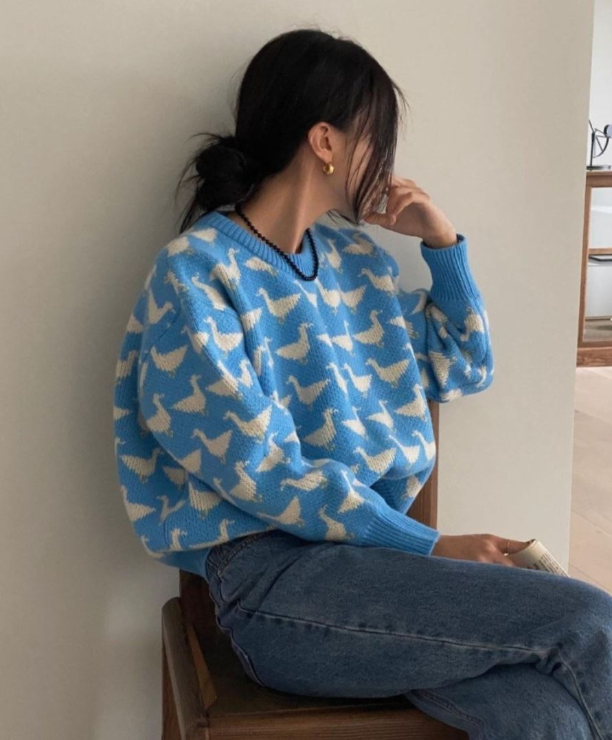 • 오리 프린팅 자가드 니트(3color)