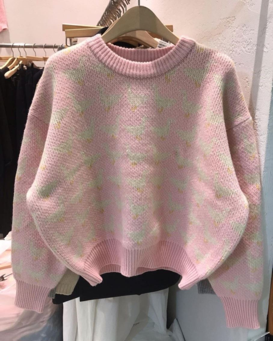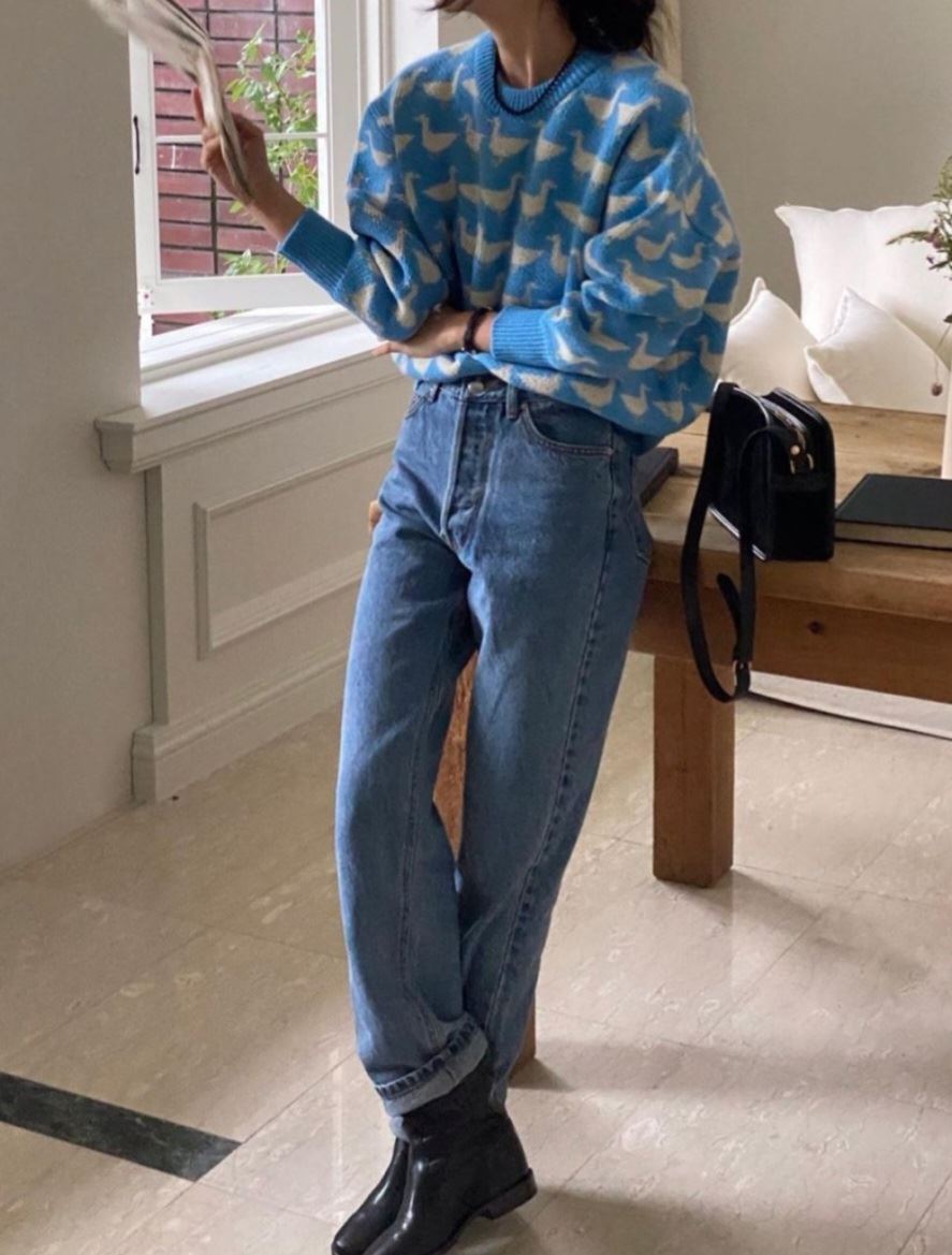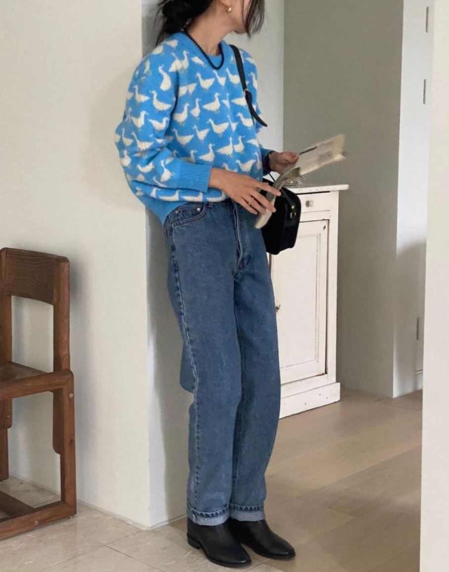 • 오리 프린팅 자가드 니트(3color)