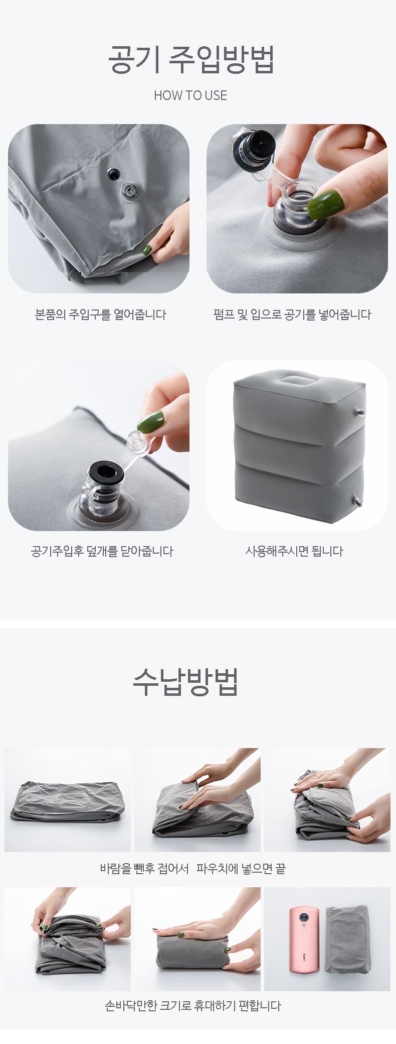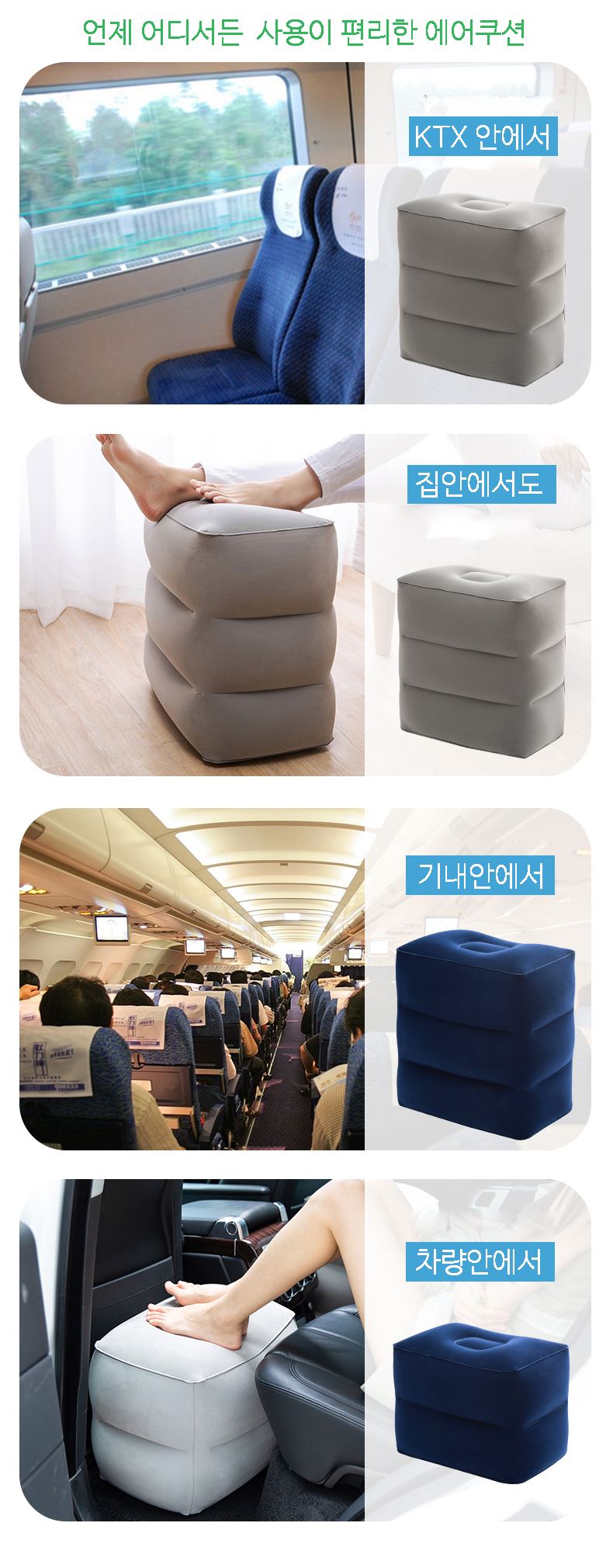 • 3단 에어발쿠션 차량용발받침 다리쿠션 파우치증정 발쿠션 장거리필수용품