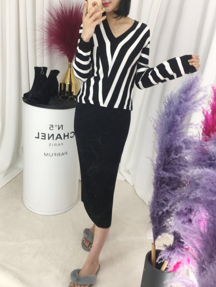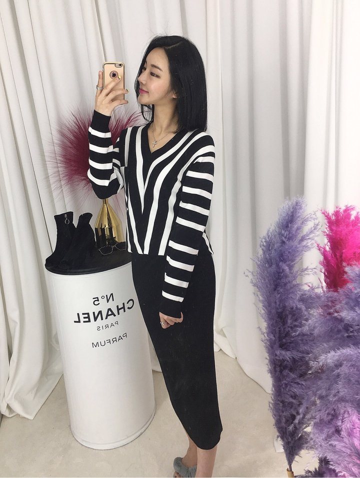 🔱브이넥 줄지니트🔱