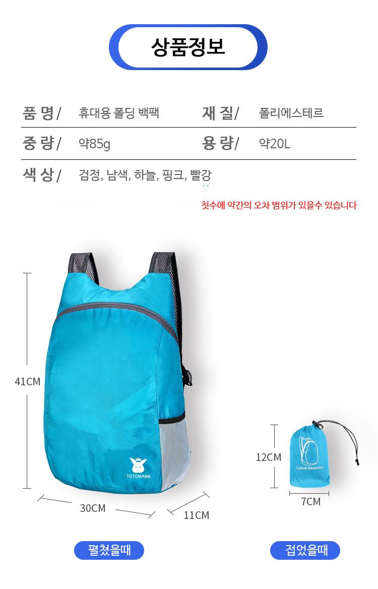 • 초경량 휴대용 폴딩 접이식 백팩