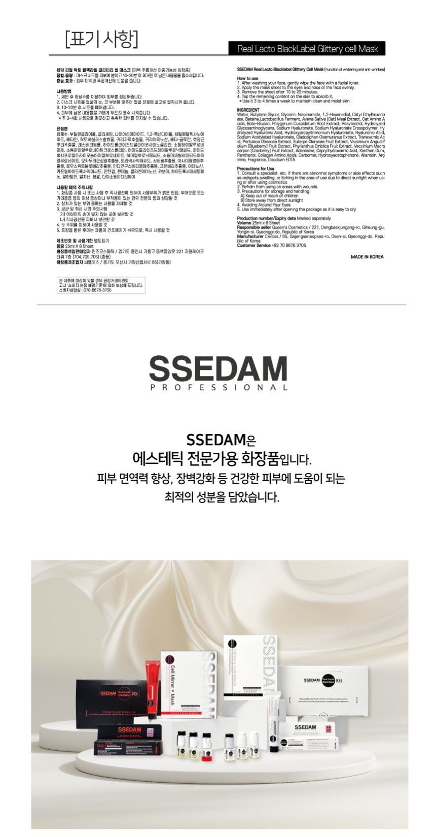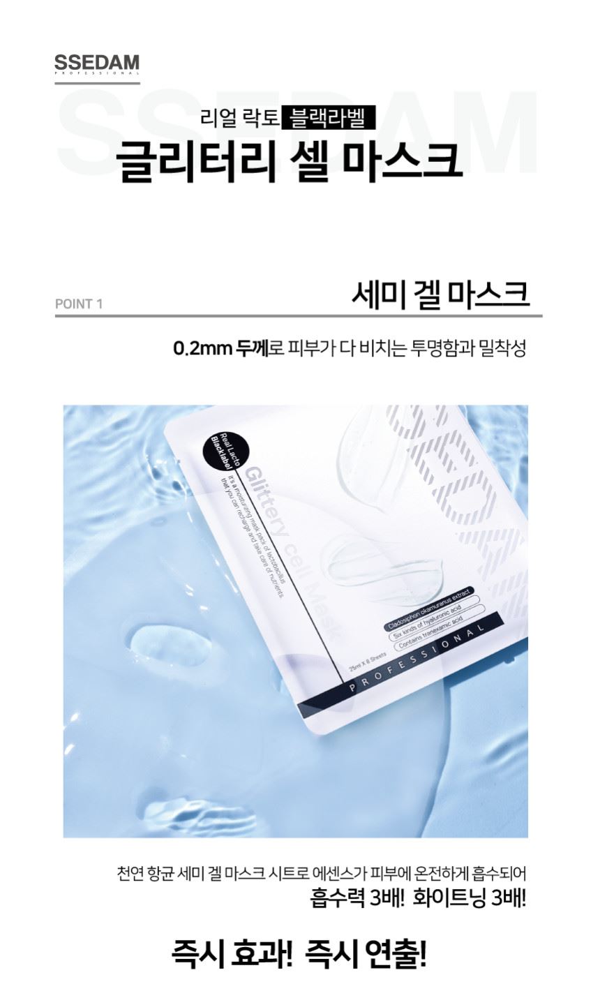 40%할인 // 쎄담 리얼락토 블랙라벨 글리터리 셀 마스크 1BOX(8ea) 트러블케어