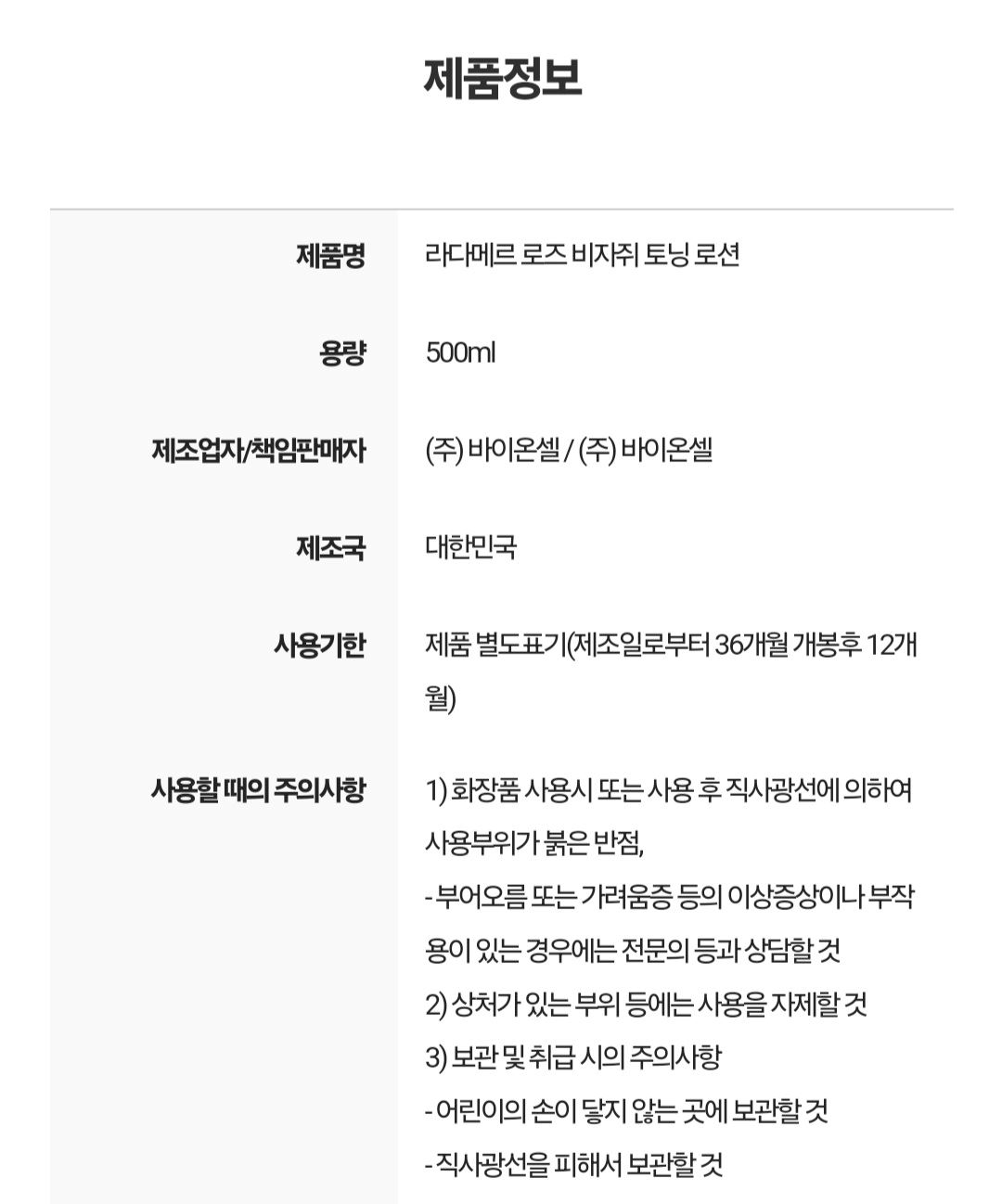 20%할인 // 라다메르 로즈 비자쥐 토닝 로션 500ml