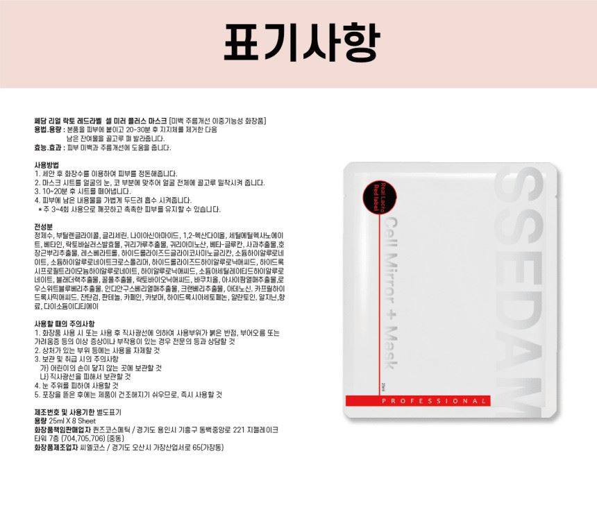 40%할인 // 쎄담 리얼락토 레드라벨 셀미러 플러스 마스크 1BOX(8ea) 탄력주름케어