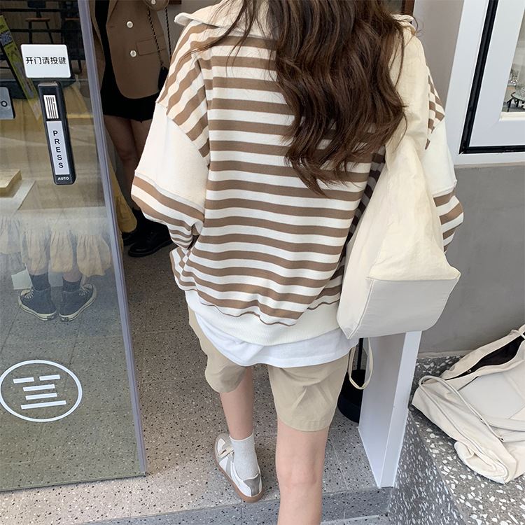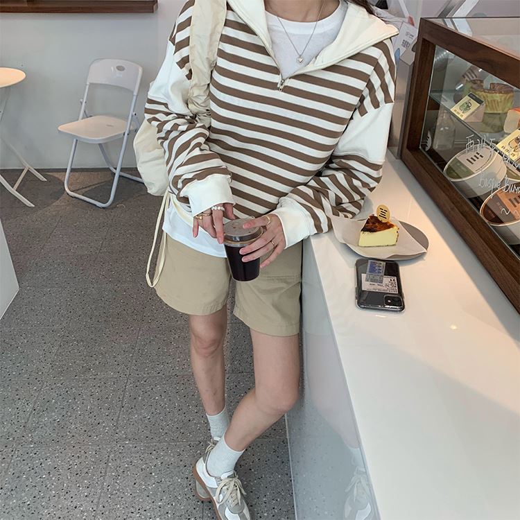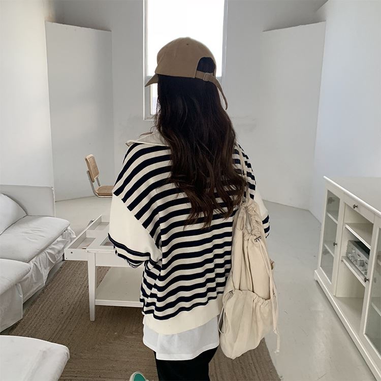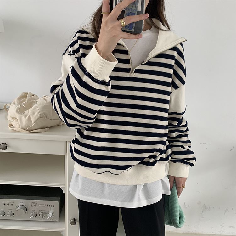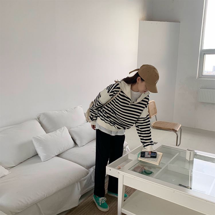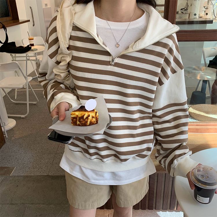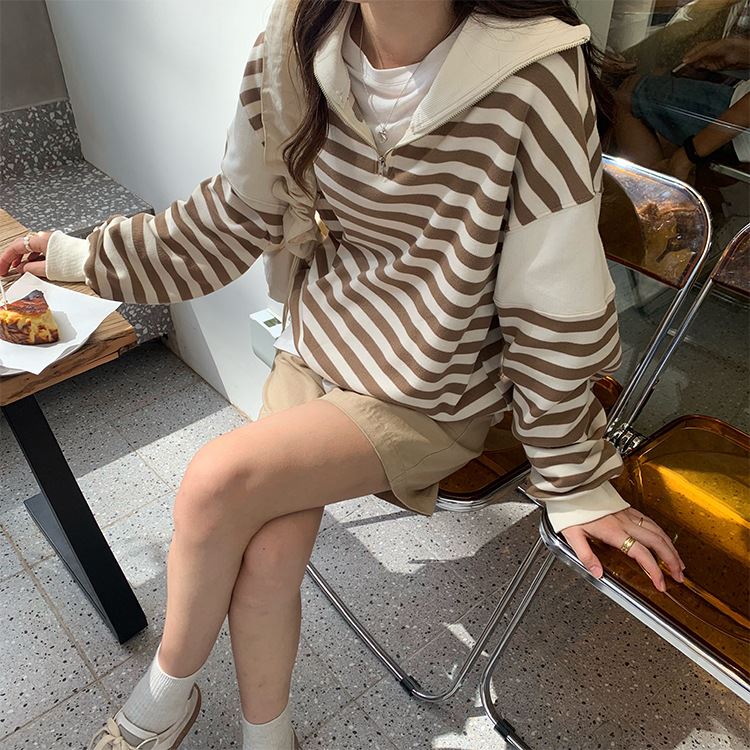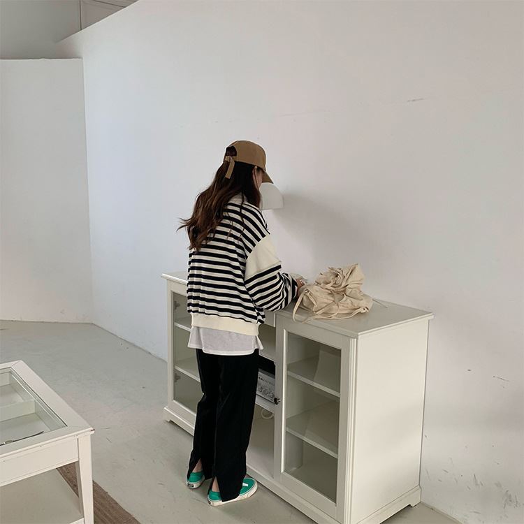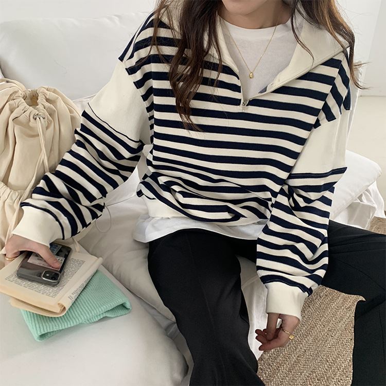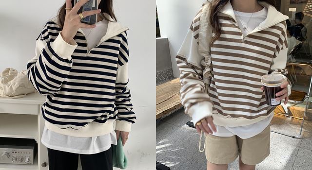 여성 하이넥 반집업 스트라이프 단가라 루즈핏 배색 맨투맨 2color / 티엘유님의 스토어 / 디비디비 / 구매하기 / 특가할인