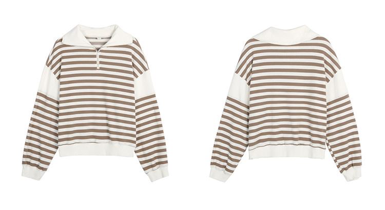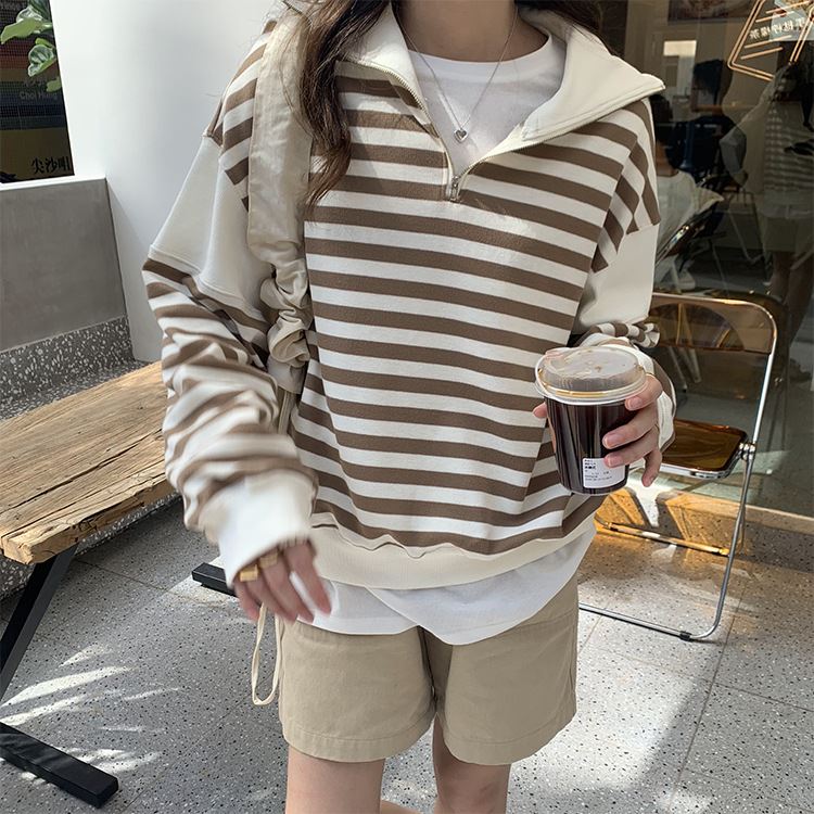 • 여성 하이넥 반집업 스트라이프 단가라 루즈핏 배색 맨투맨 2color