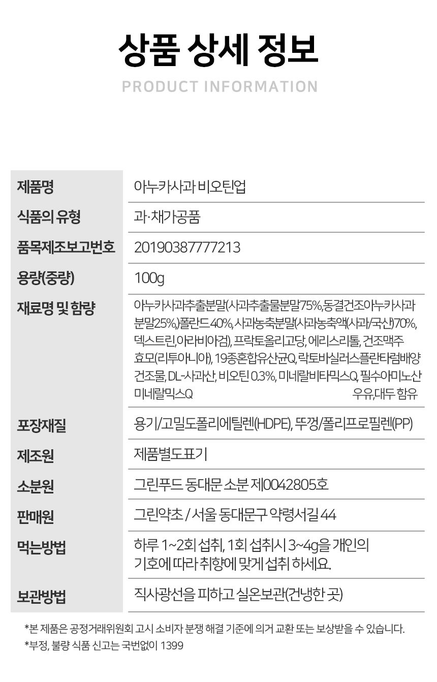 아누카 사과 추출분말 비오틴업 추출물  / 그린약초 / 디비디비 / 구매하기 / 특가할인