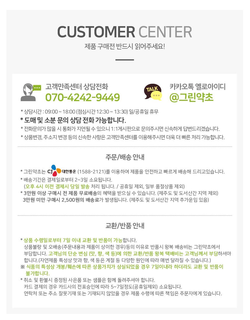 그린약초에 문의해보세요. 고객님의 문의 내용은 셀러만 확인 가능합니다.
