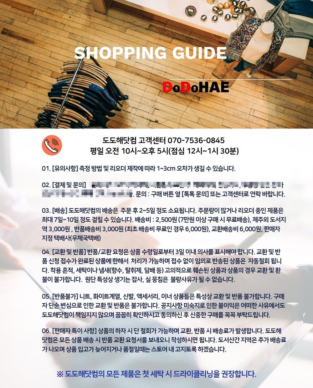 A/S 책임자와 전화번호 도도해닷컴 고객센터 070-7536-0845 평일 오전 10시~오후 5시(점심 12시~1시), 주말 및 공휴일 휴무