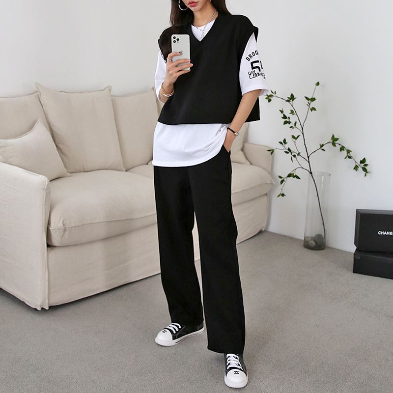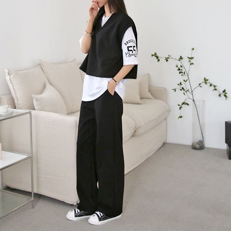 | 치수 | 조끼 총장 52cm/ 어깨 49cm/ 가슴 60cm 상의 총장 73cm/ 어깨 51cm/ 가슴 54cm/ 소매 27cm 하의 총장 101cm/ 허리 33cm/ 힙 48cm/ 밑위 39cm/ 밑단 23cm |