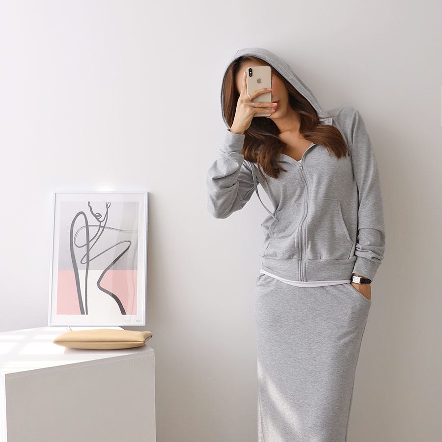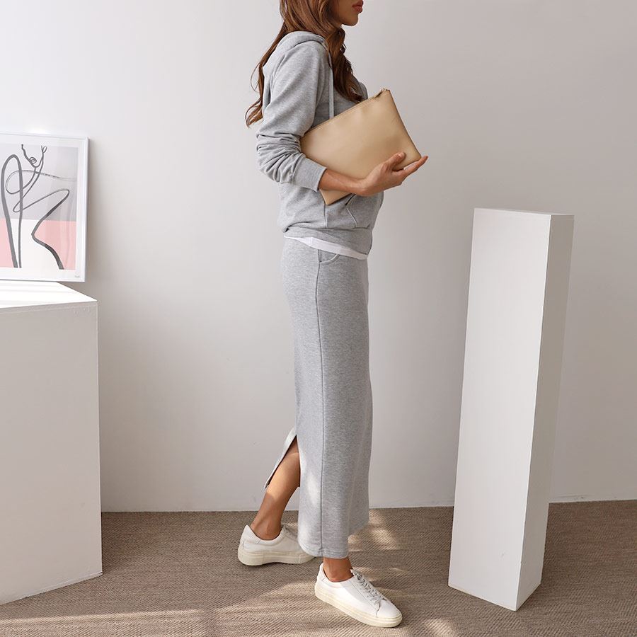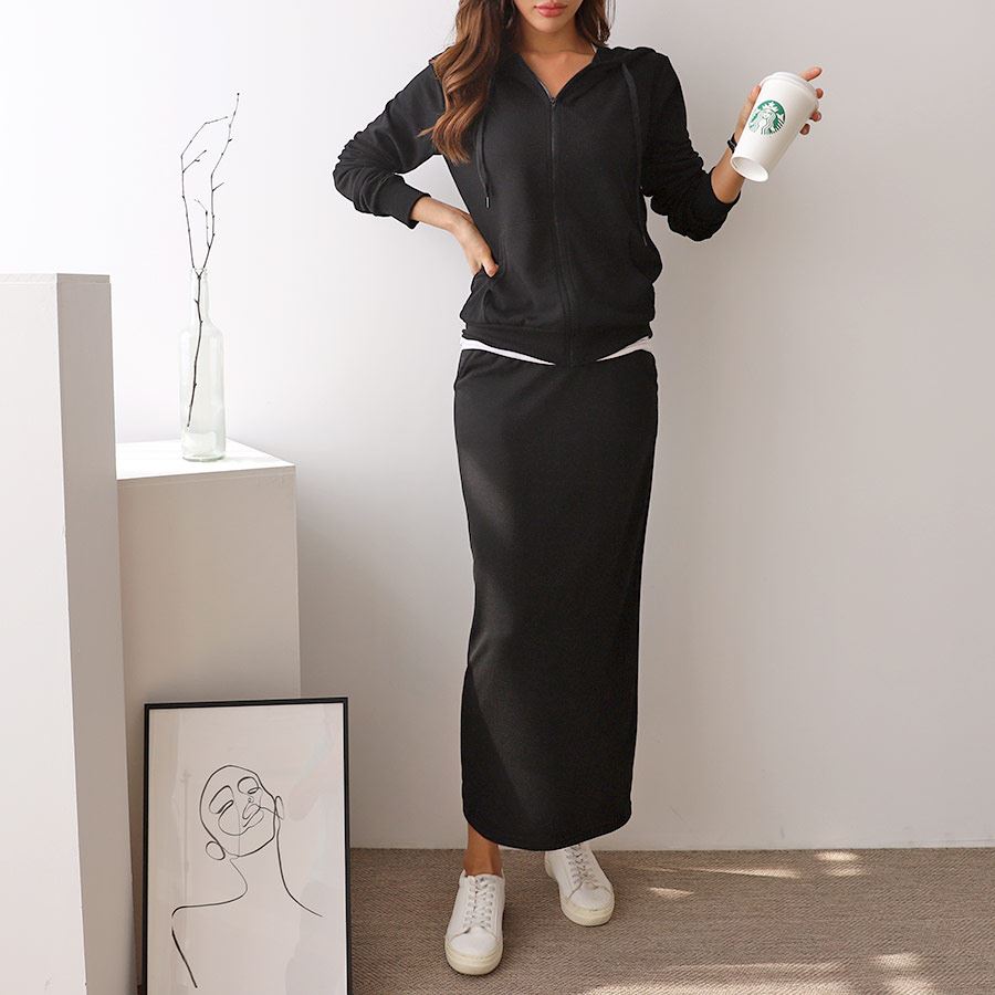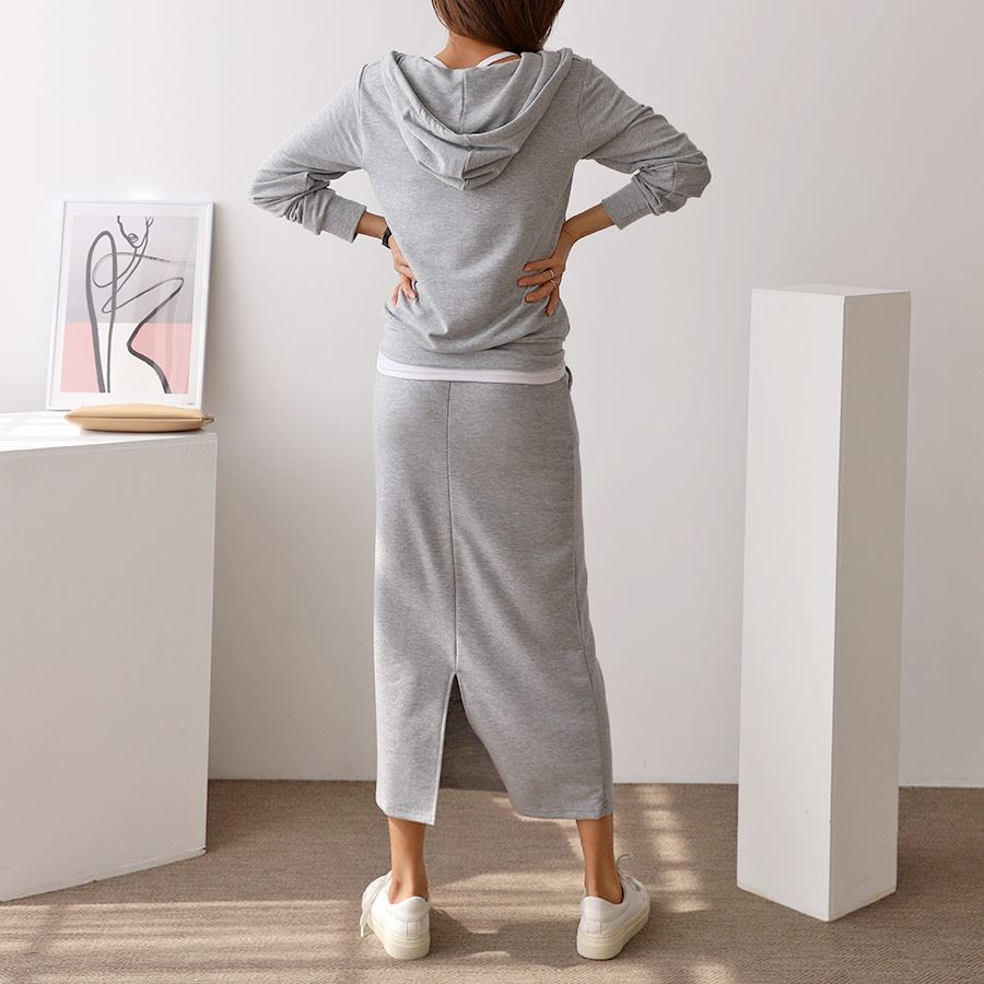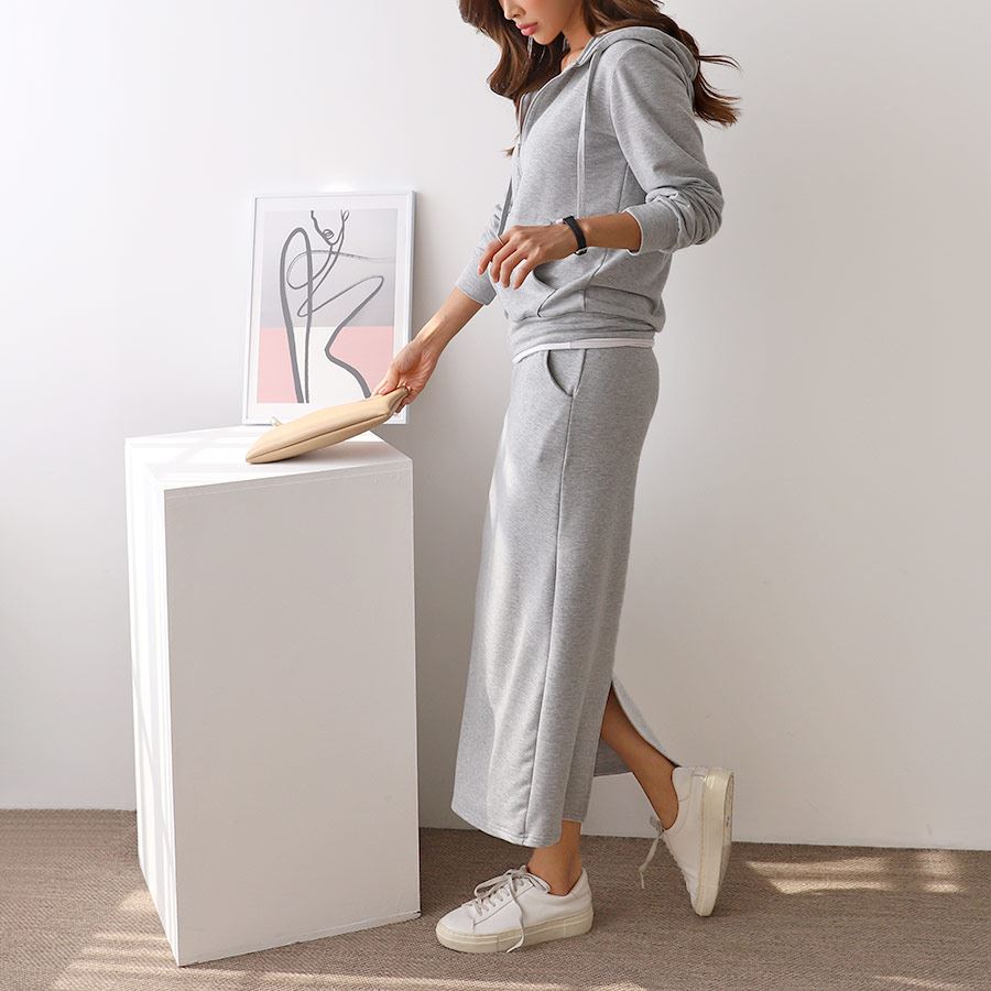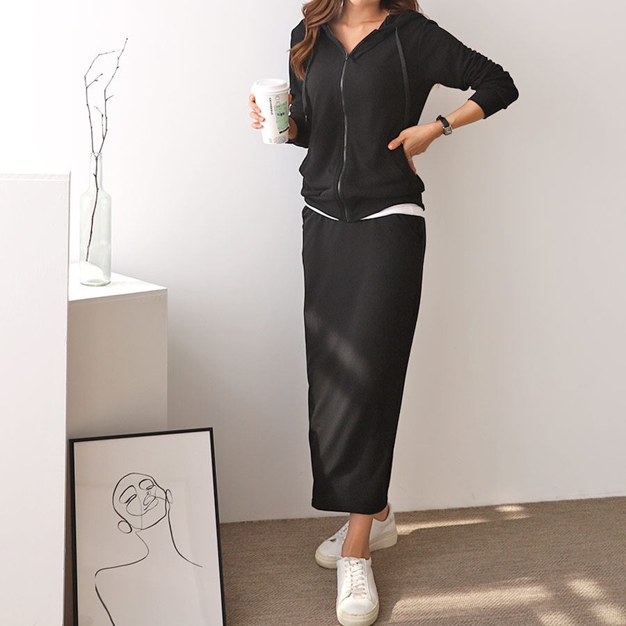 • 여자 페미닌 치마 집업 후드 세트 데일리