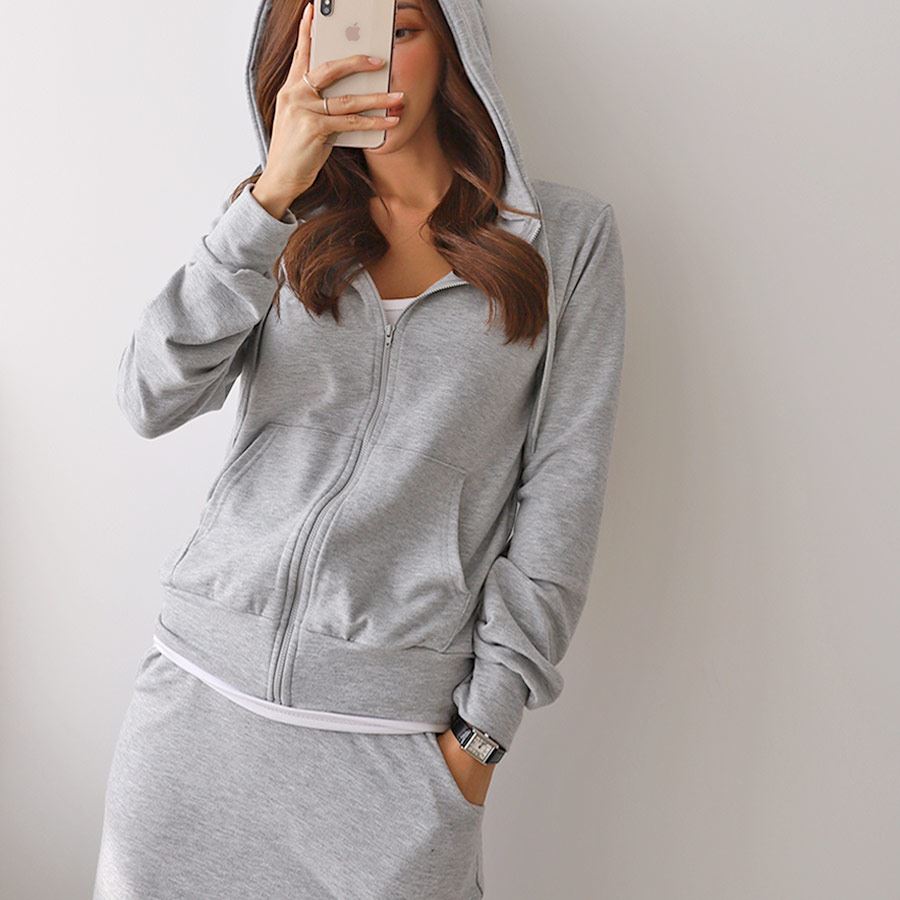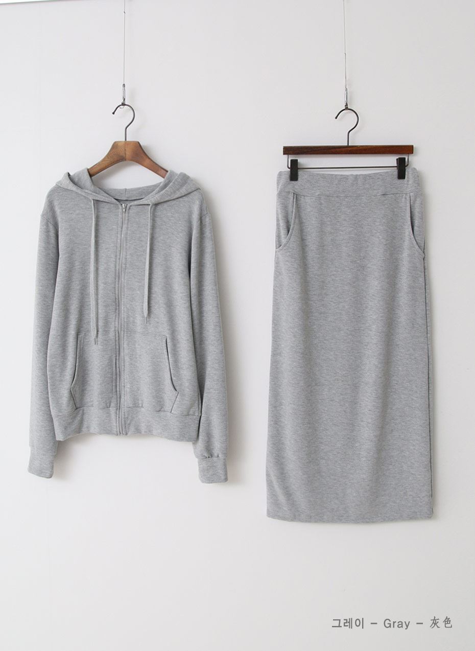 • 여자 페미닌 치마 집업 후드 세트 데일리(심플H집업)