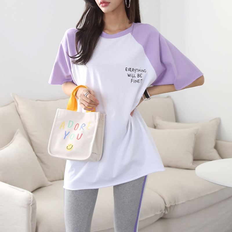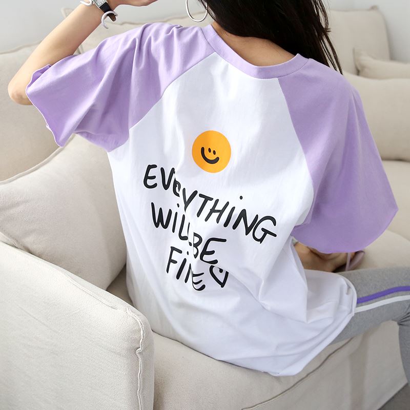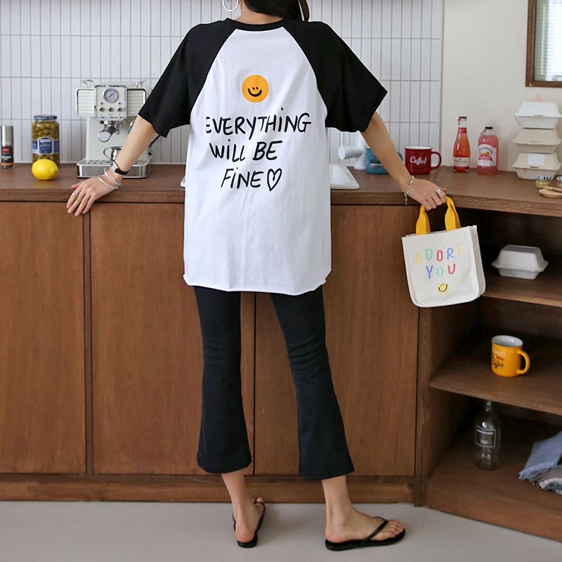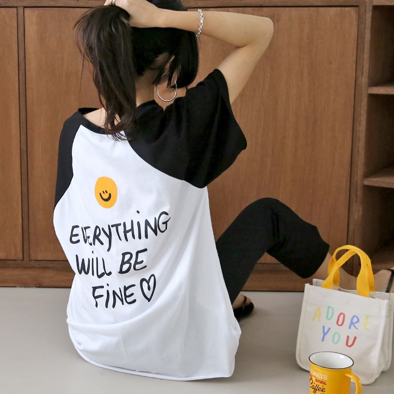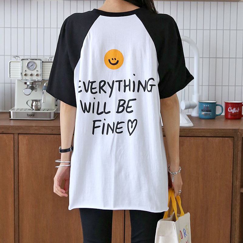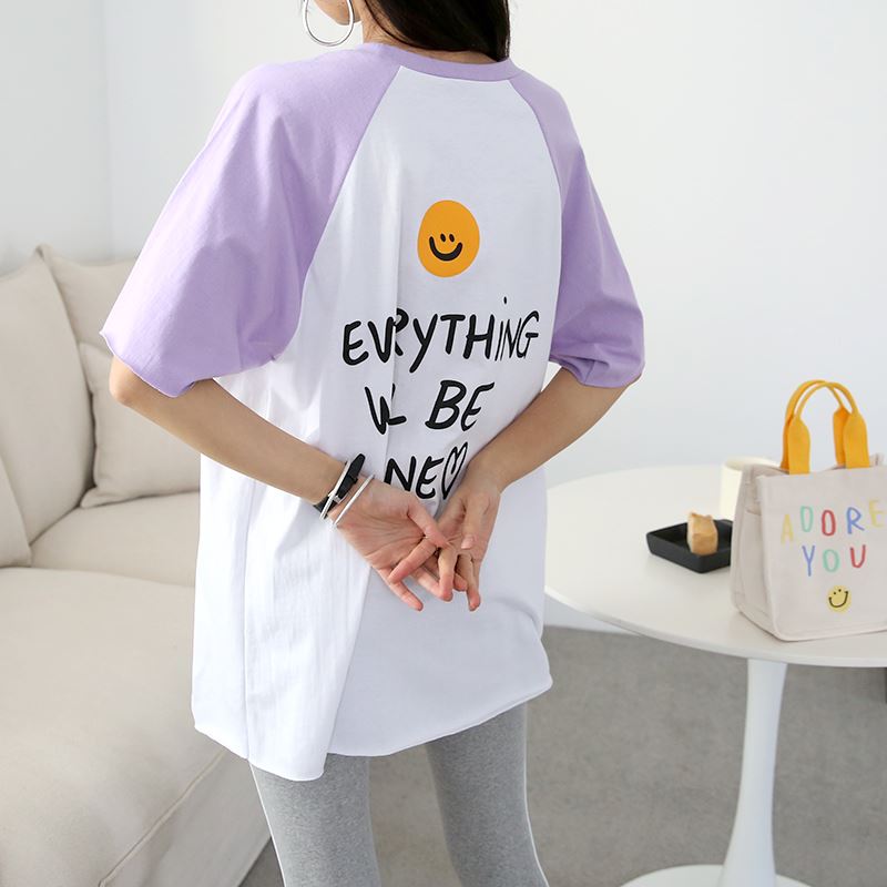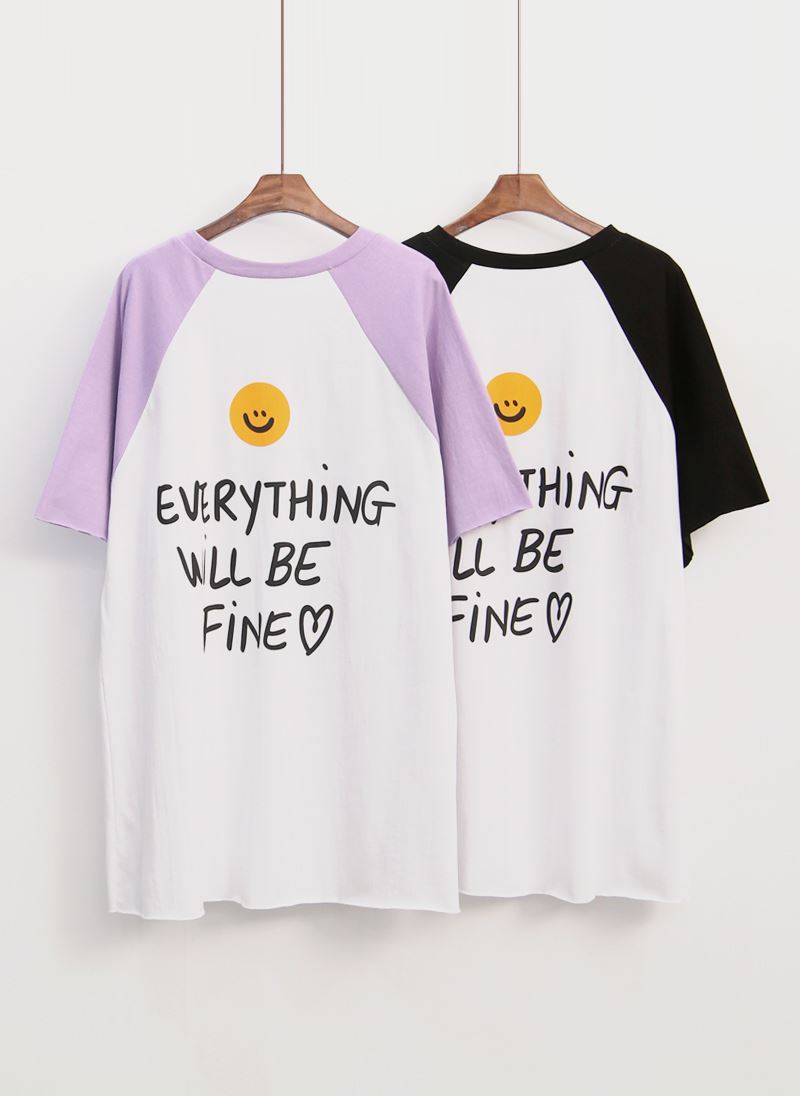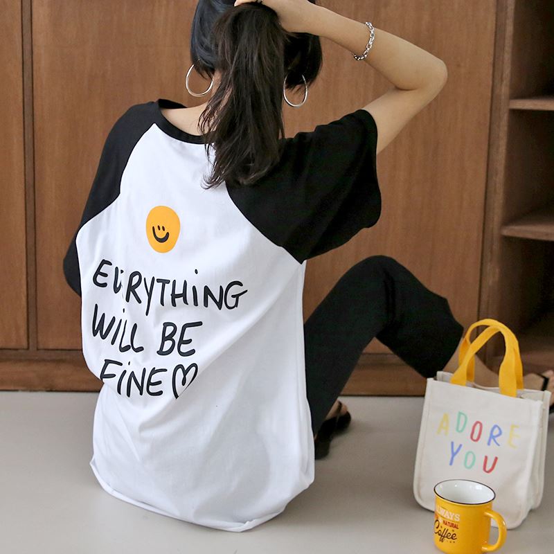 • 여성 반팔 소매 스마일 나그랑 티셔츠
