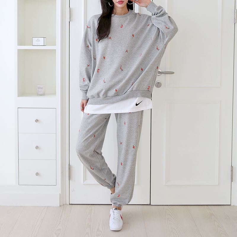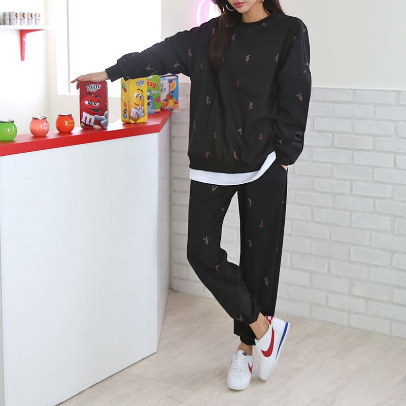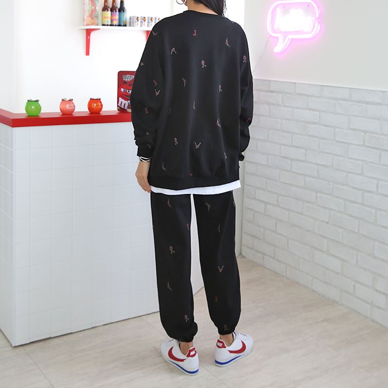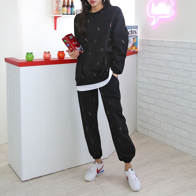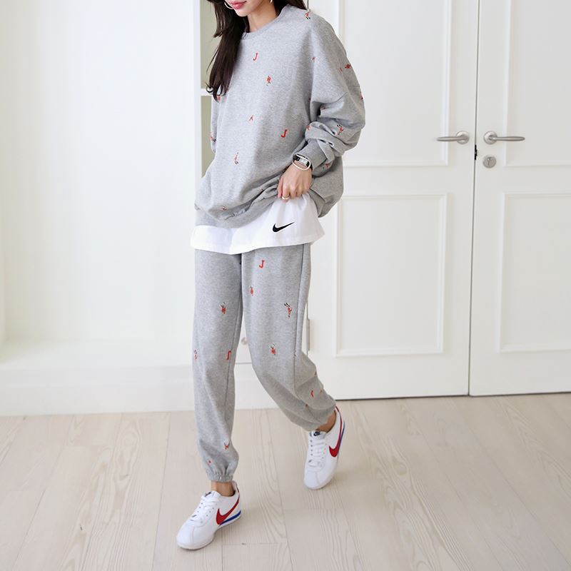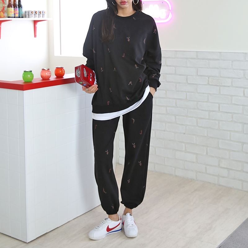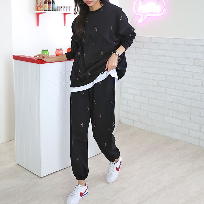 여성 트레이닝 세트 J 레터링 맨투맨 조거 팬츠 세트 간절기