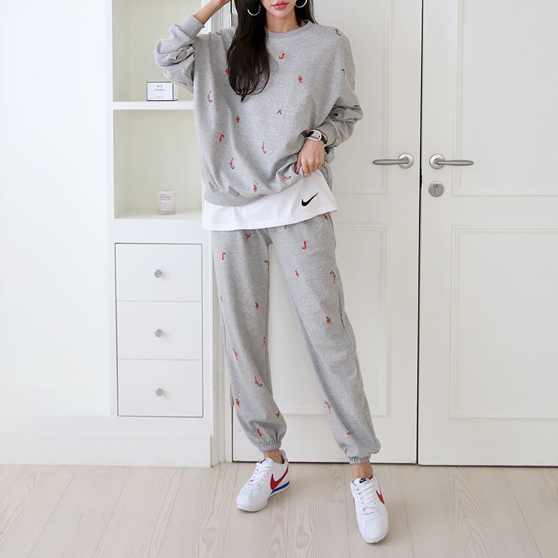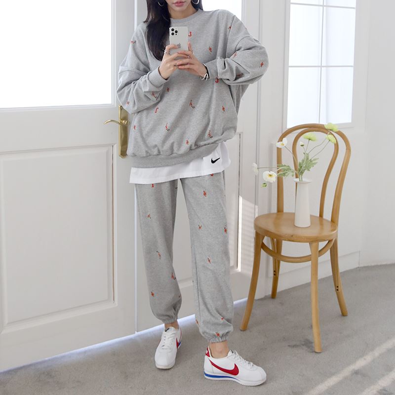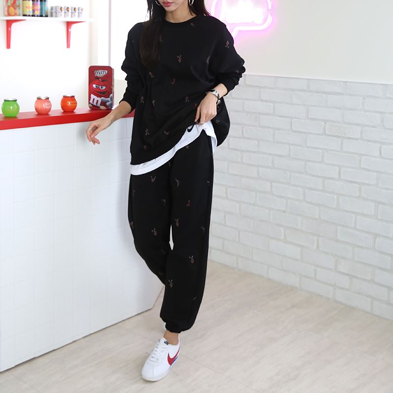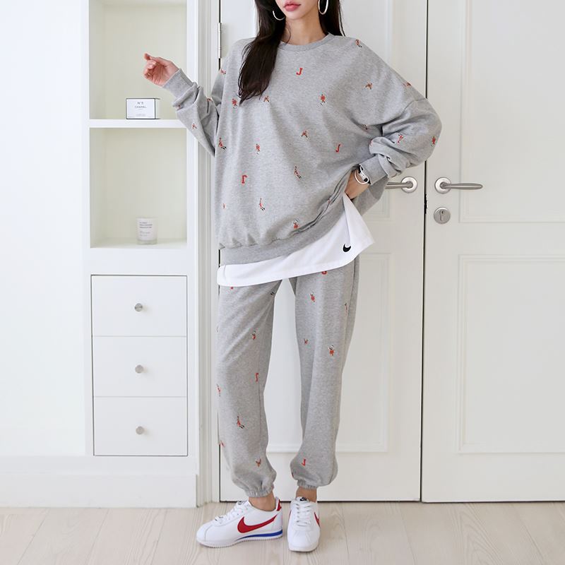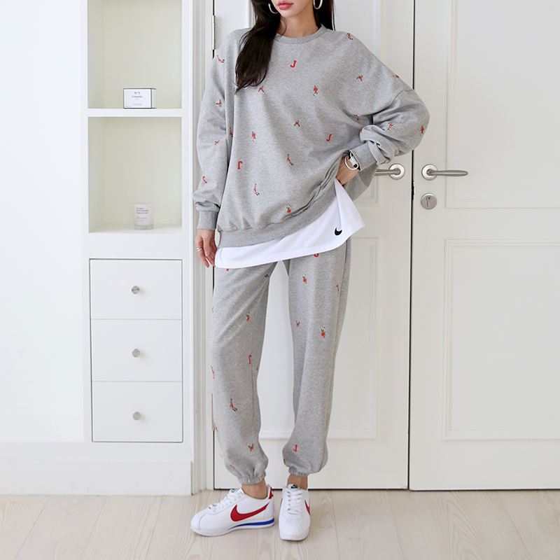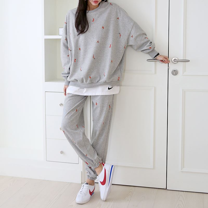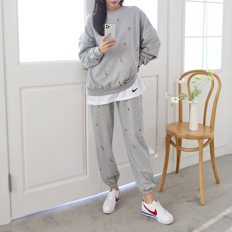 여성 트레이닝 세트 J 레터링 맨투맨 조거 팬츠 세트 간절기