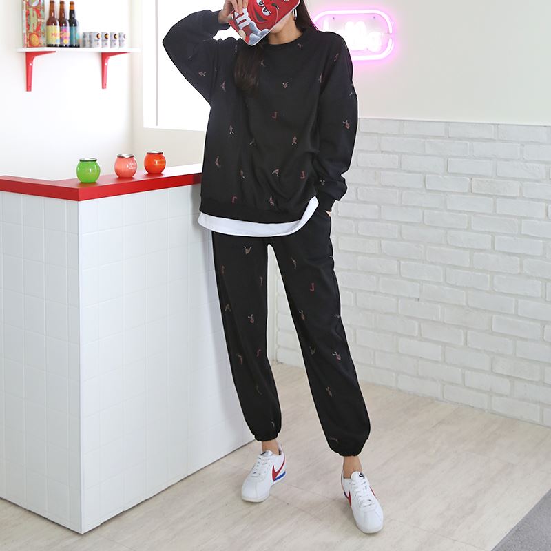 • 여성 트레이닝 세트 J 레터링 맨투맨 조거 팬츠 세트 간절기(J던스-SET)