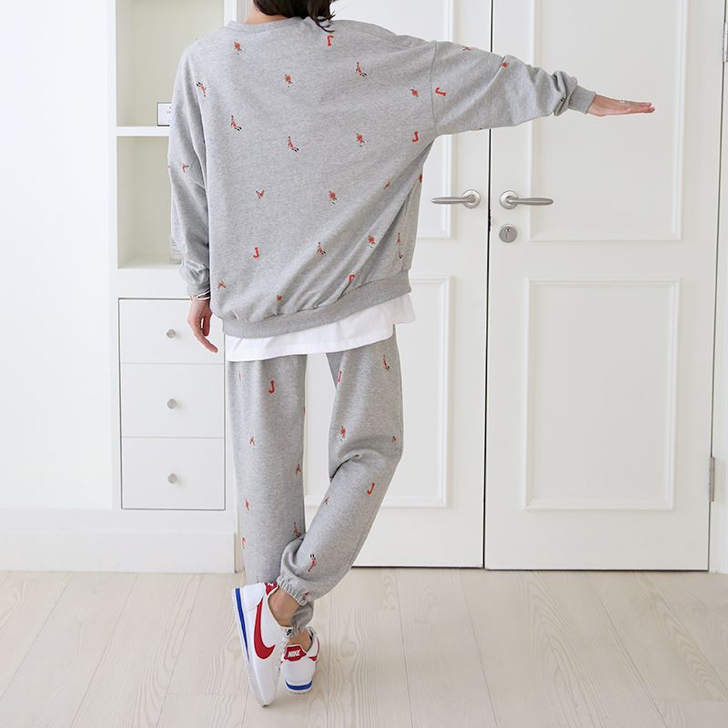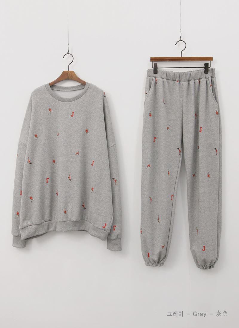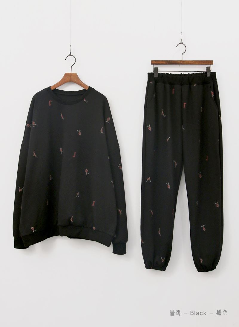 • 여성 트레이닝 세트 J 레터링 맨투맨 조거 팬츠 세트 간절기