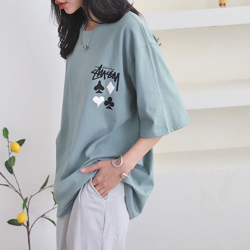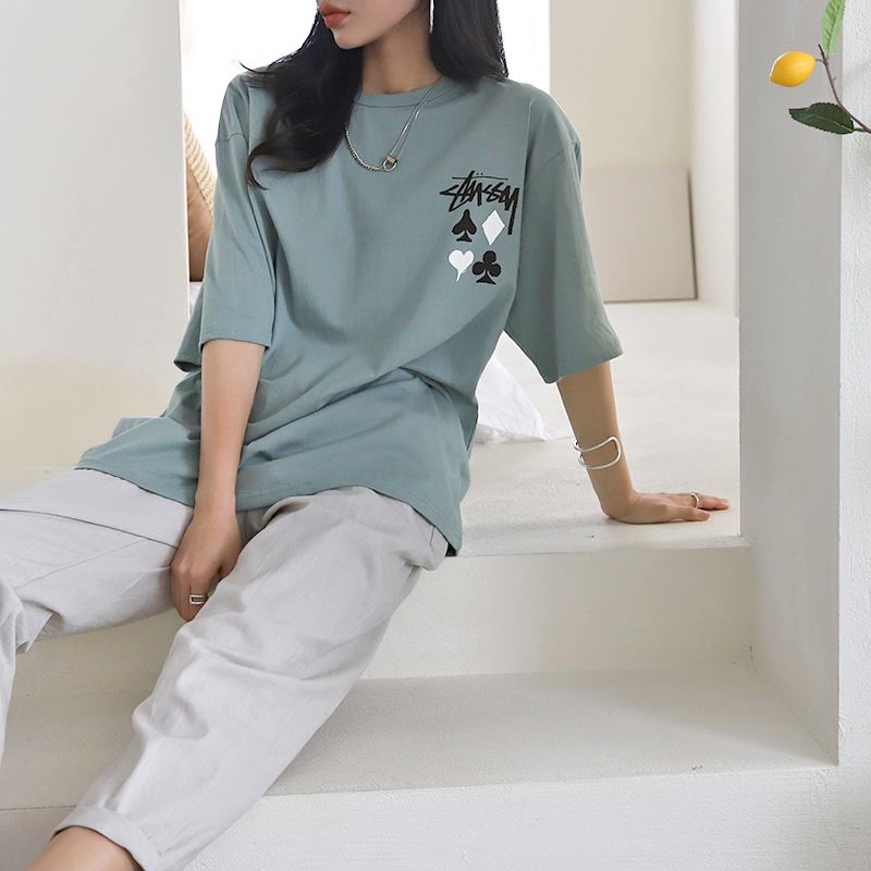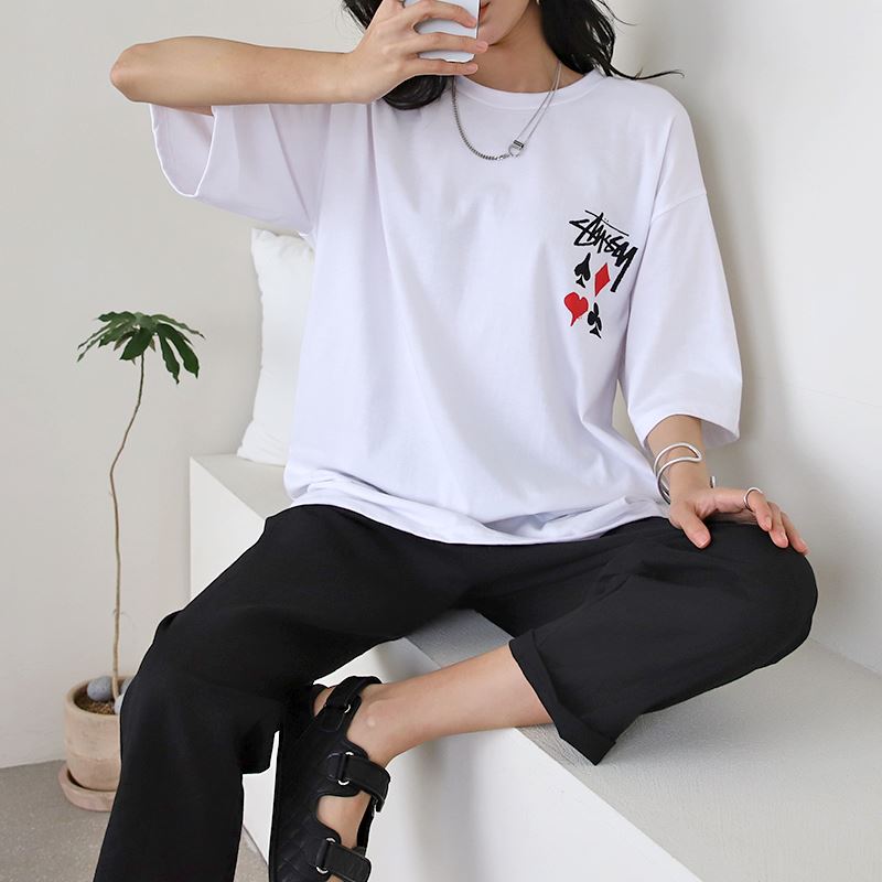 • 여성 반팔 티셔츠 그래픽 디자인 오버핏 데일리룩