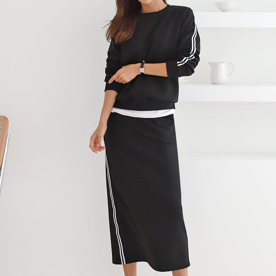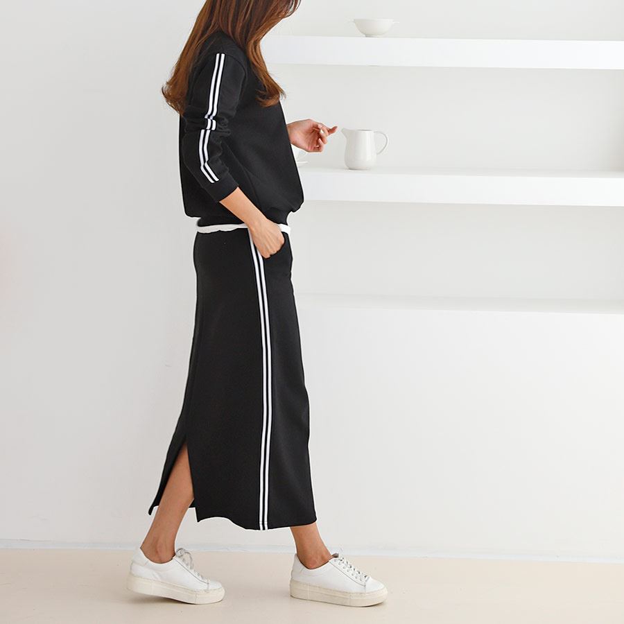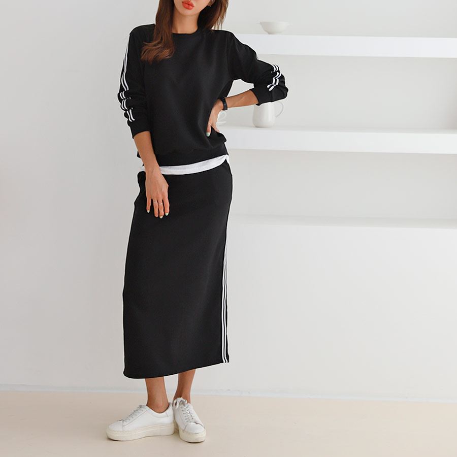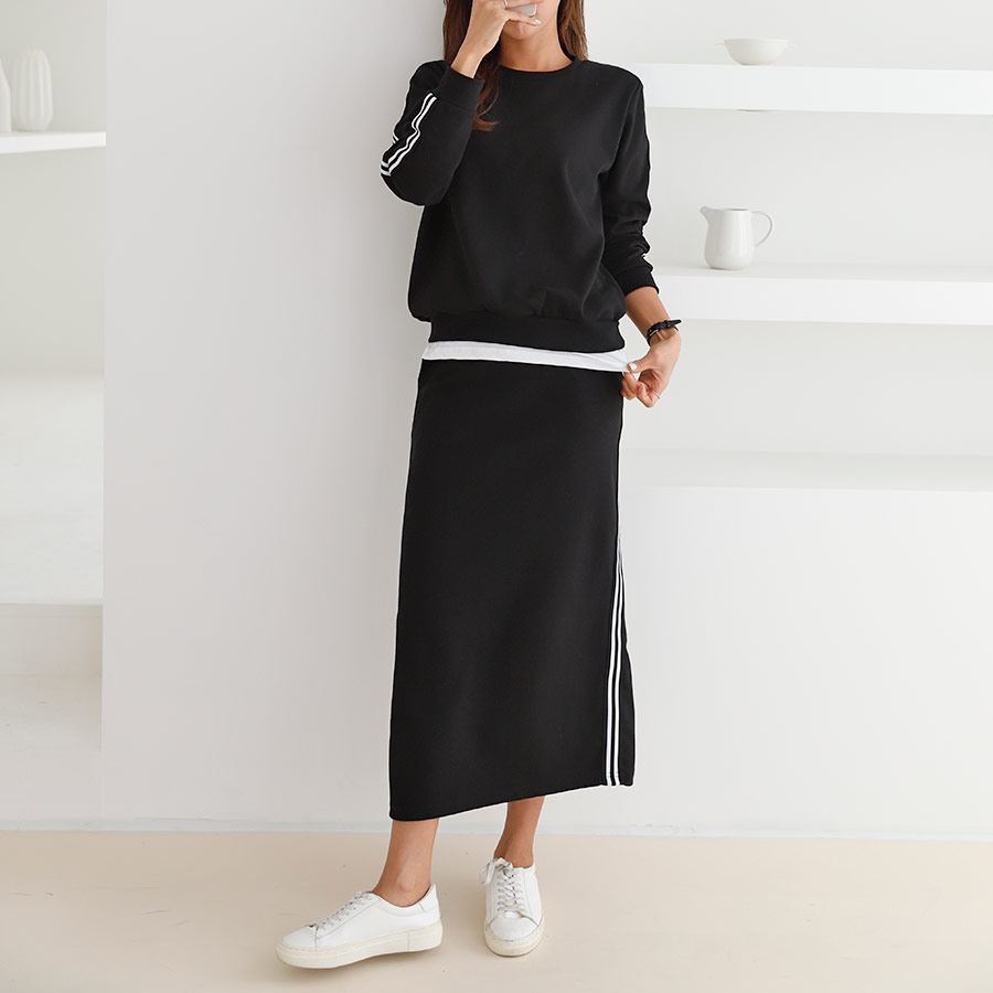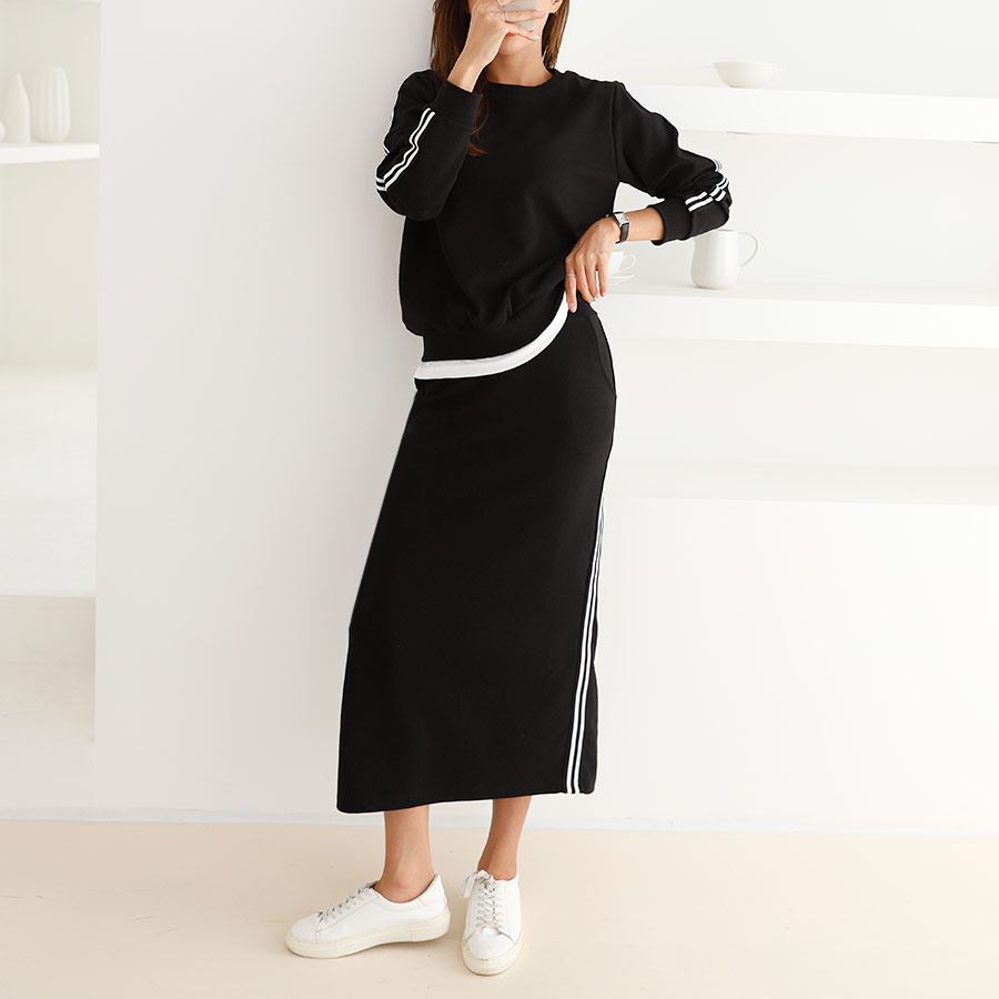 여성 데일리 날씬 스커트 맨투맨 티셔츠 세트 투 라인