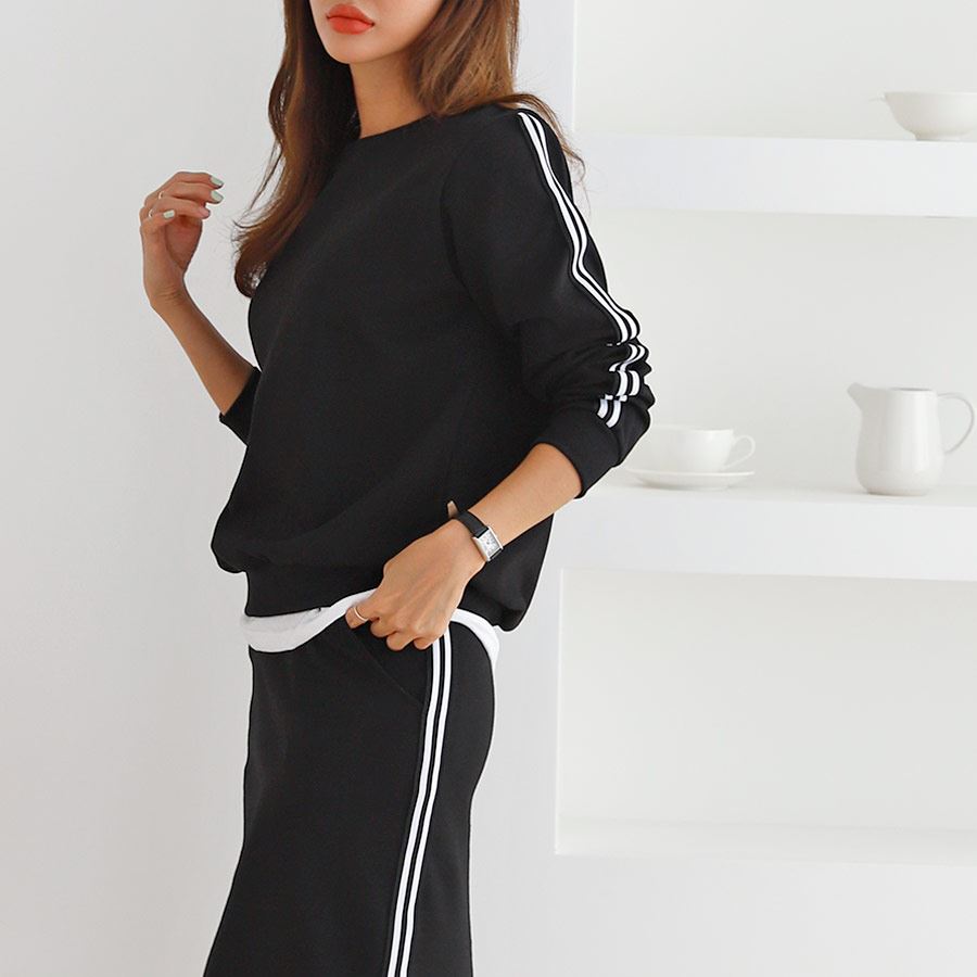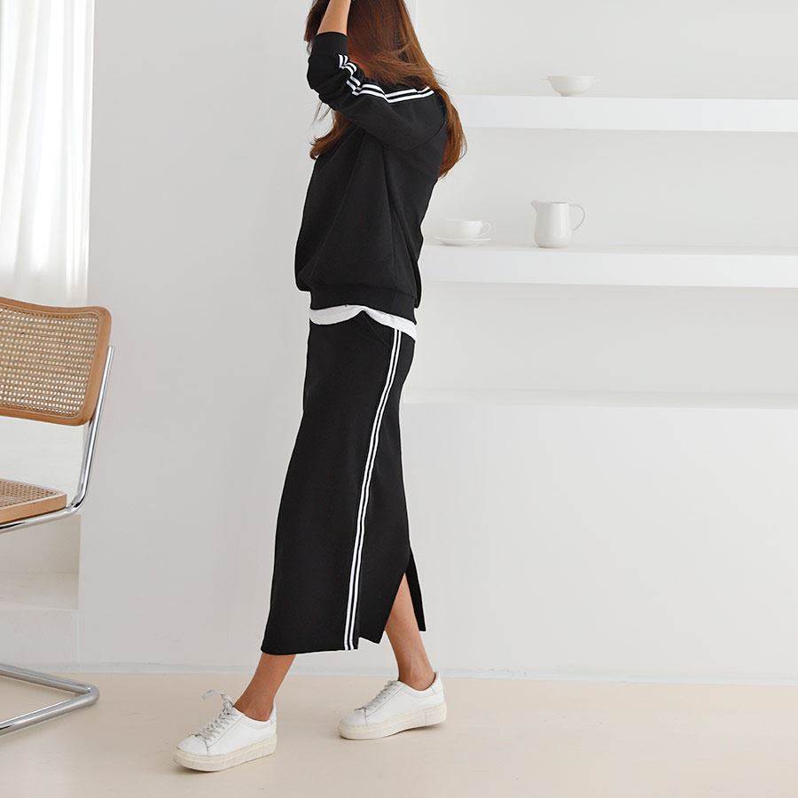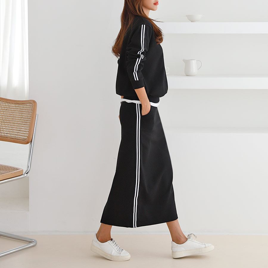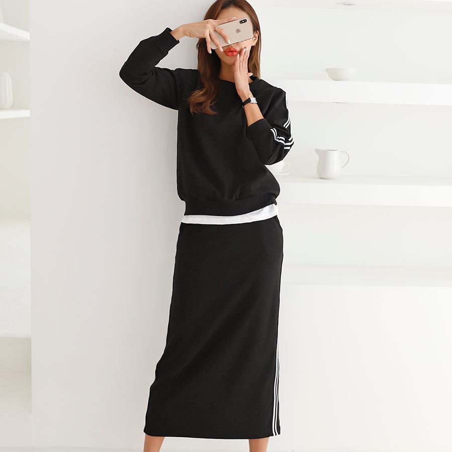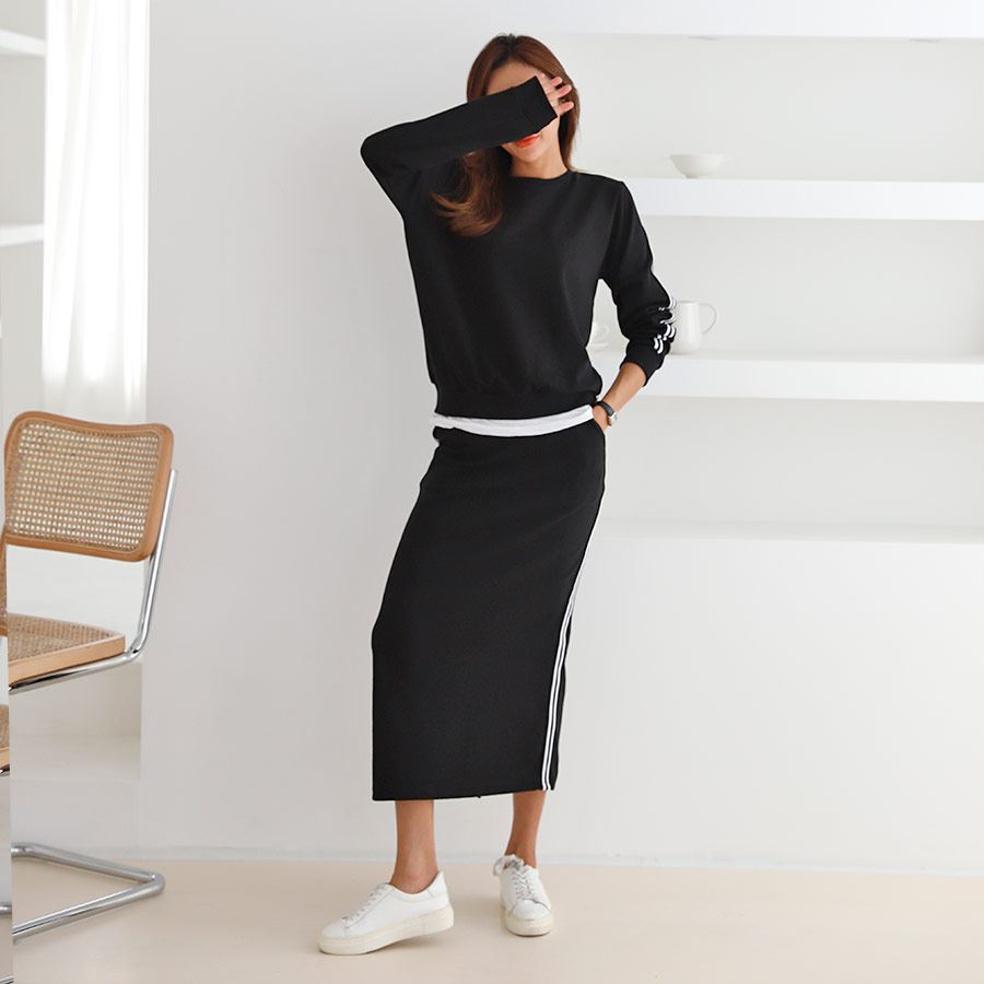여성 데일리 날씬 스커트 맨투맨 티셔츠 세트 투 라인