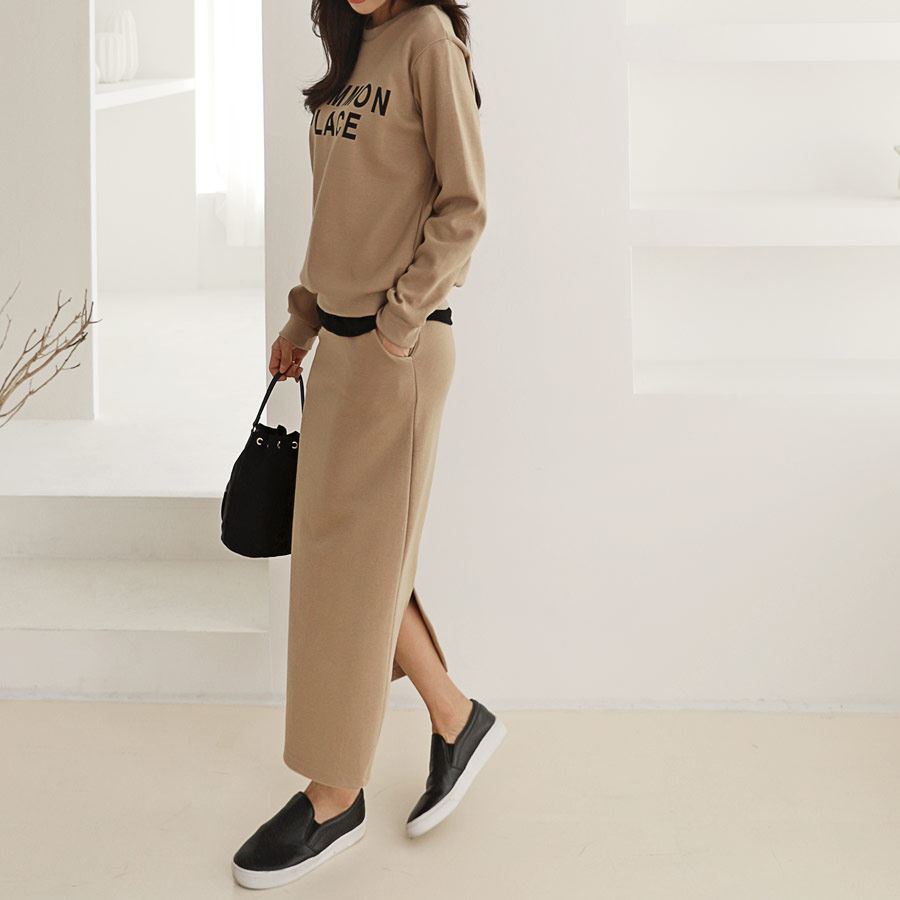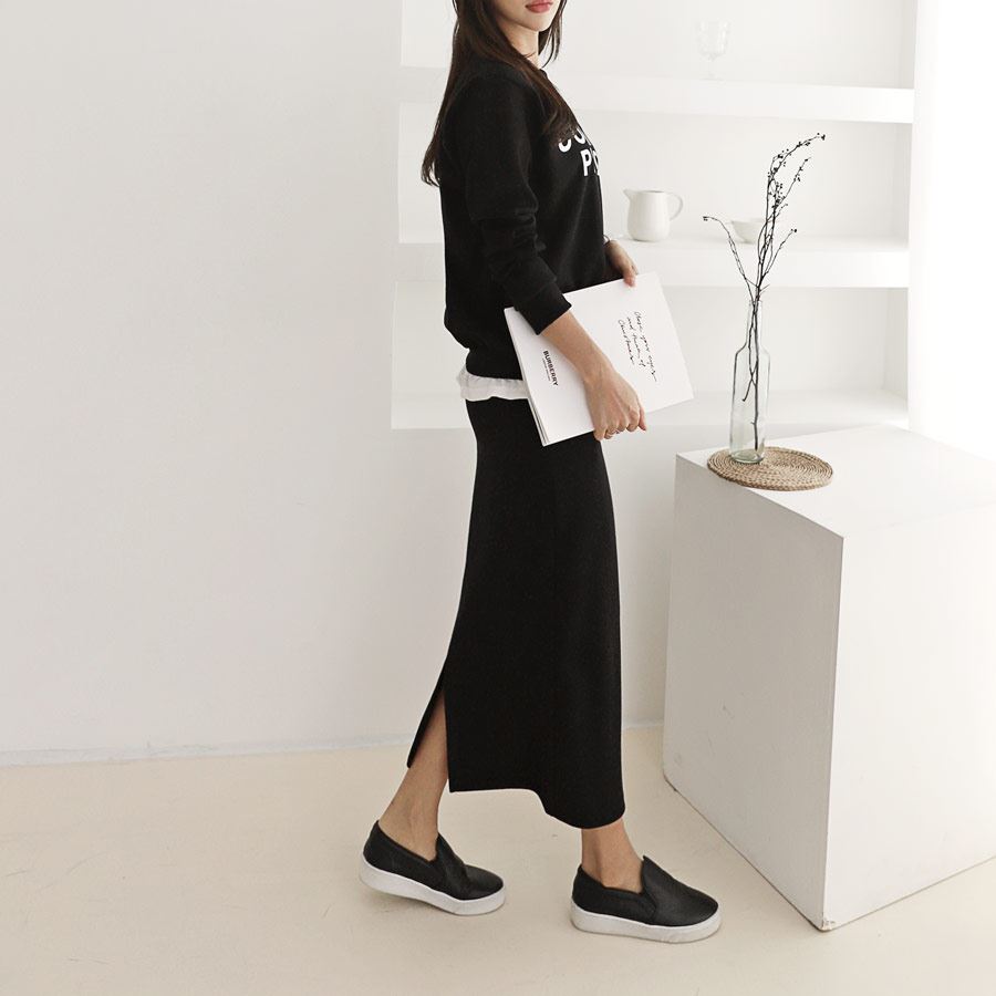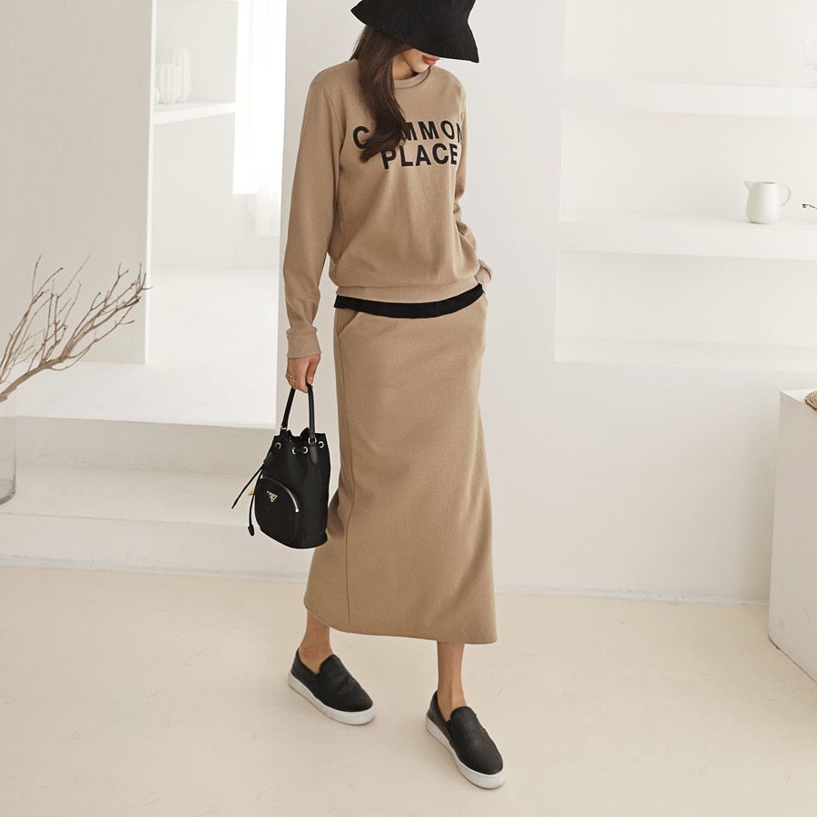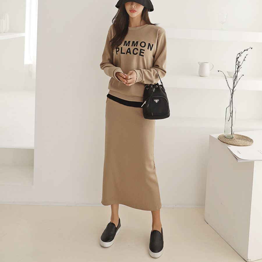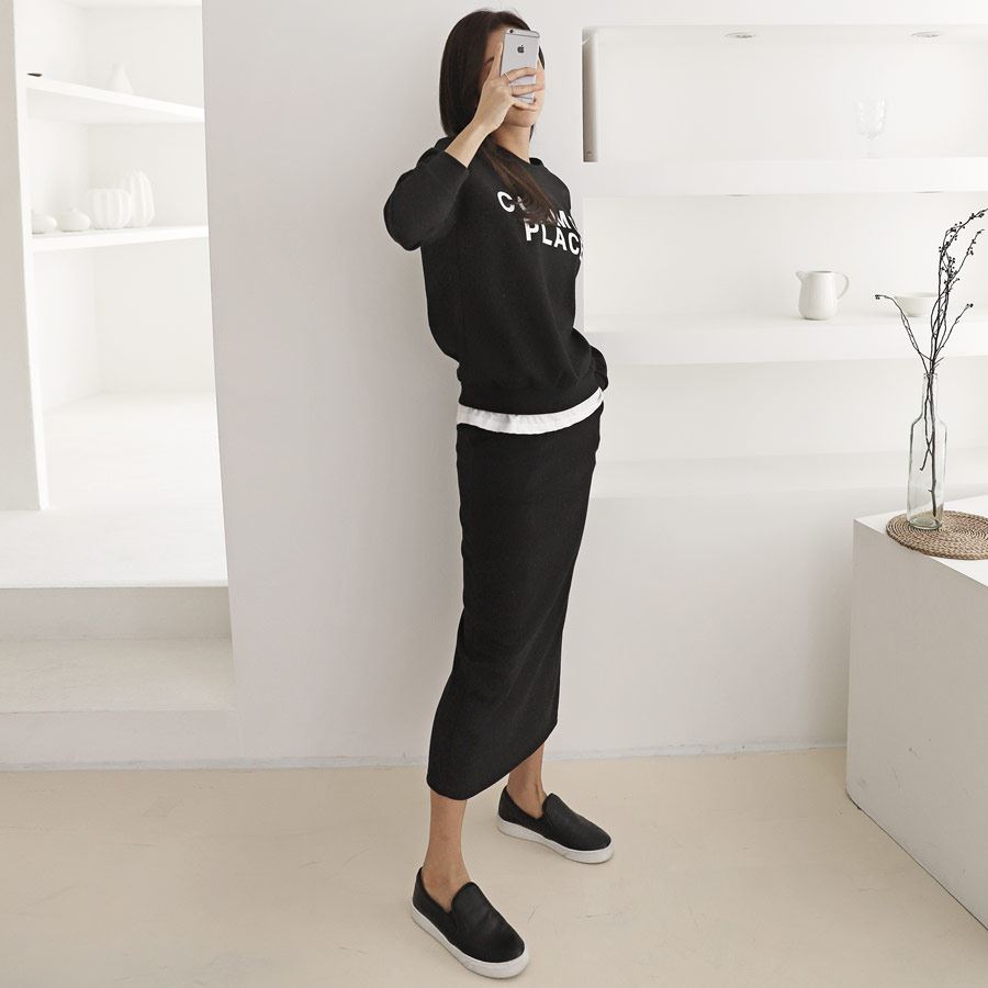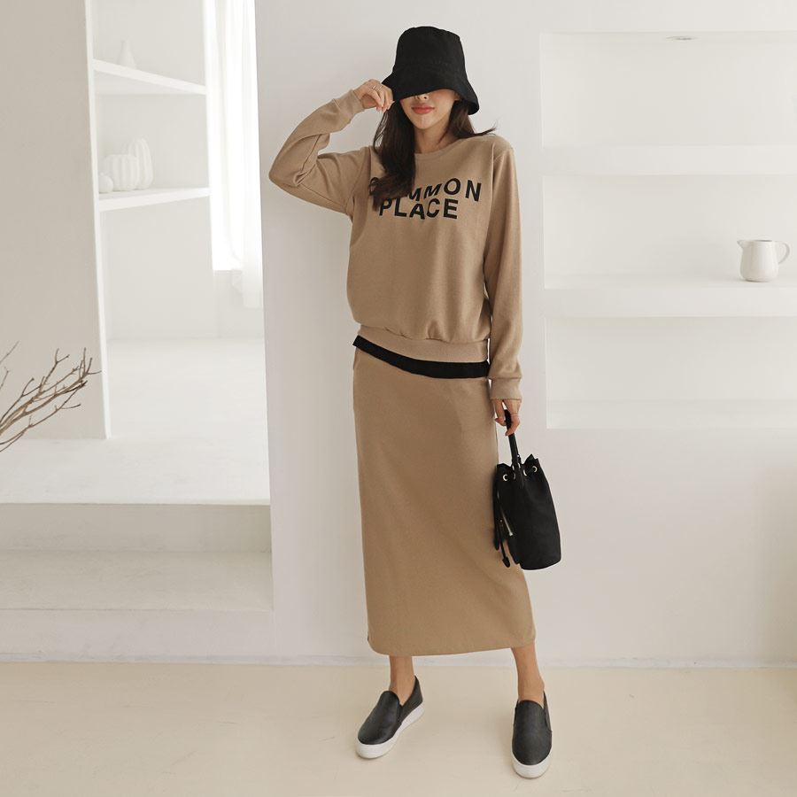 • 여성 스커트 맨투맨 이너 레터링 데일리 세트 날씬 코디