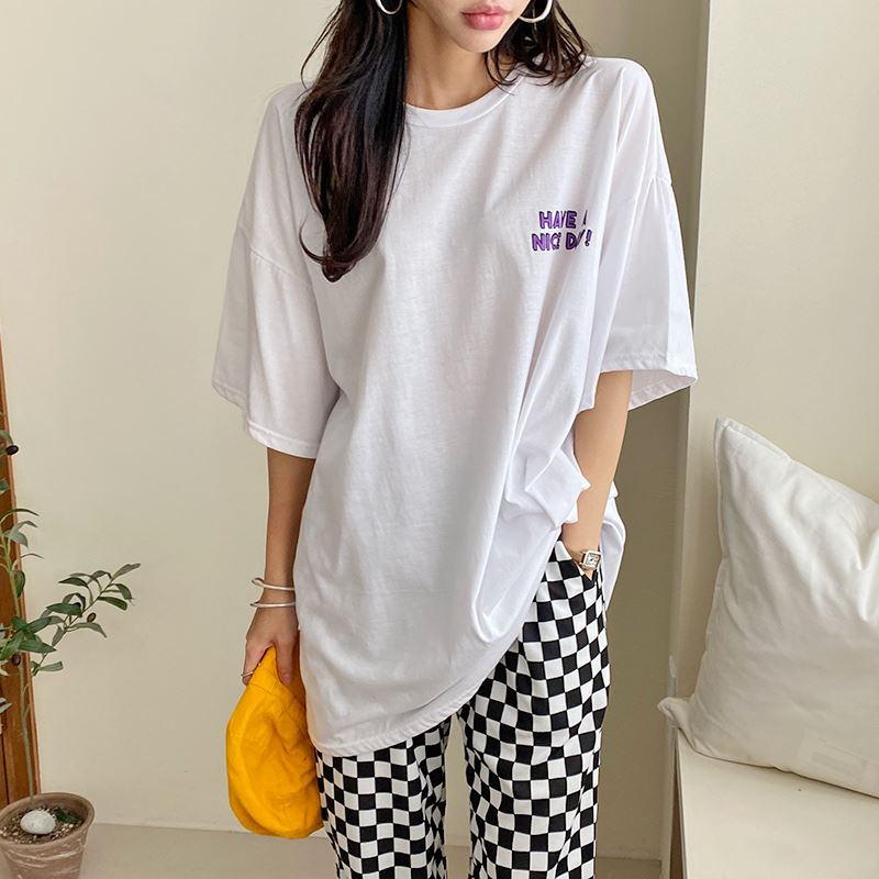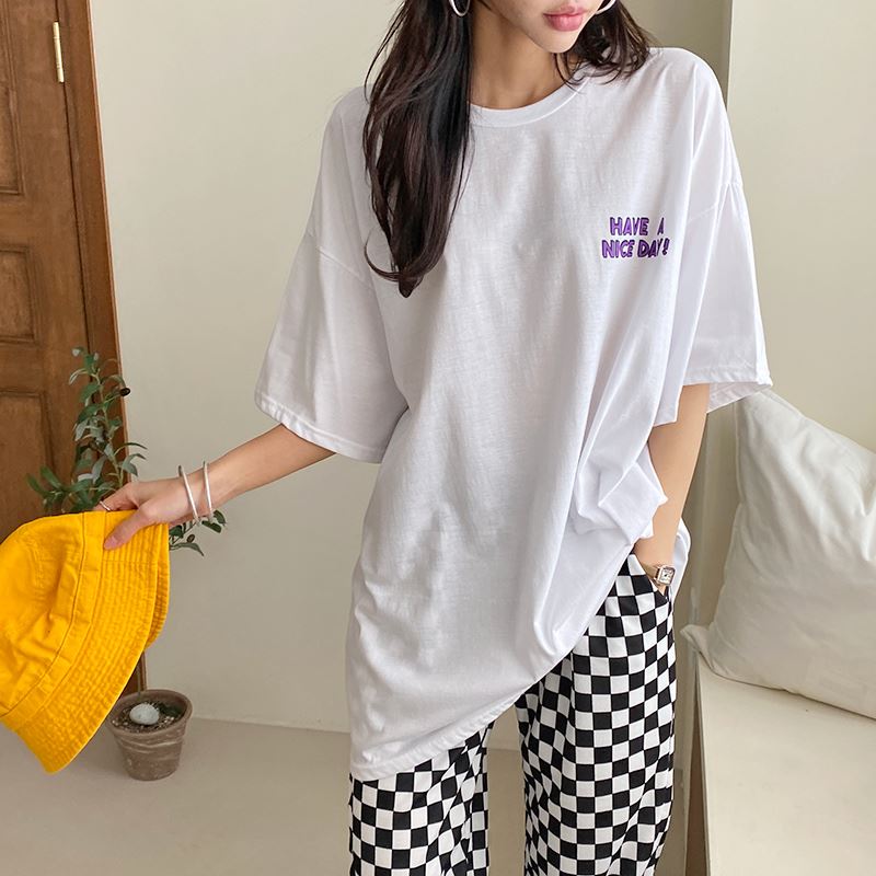 으로 데일리 무드를 연출한 여름 티셔츠에요.