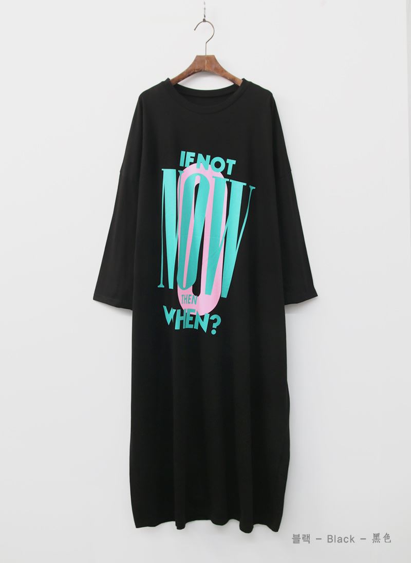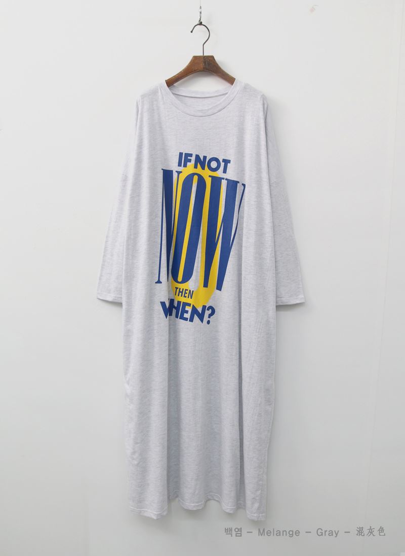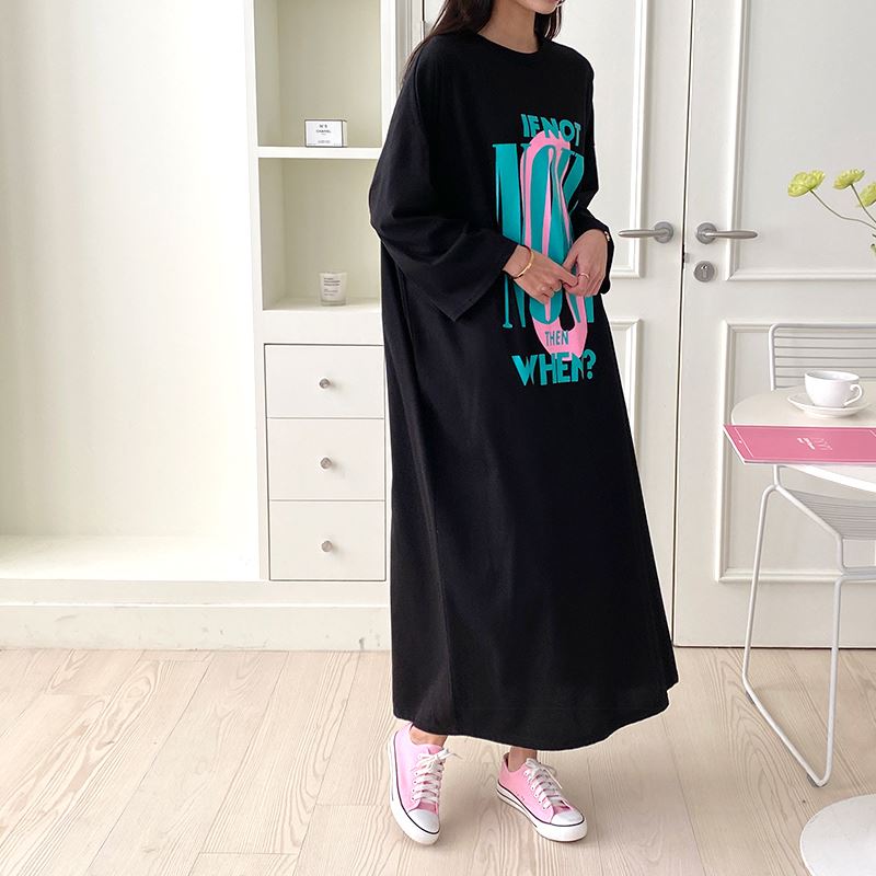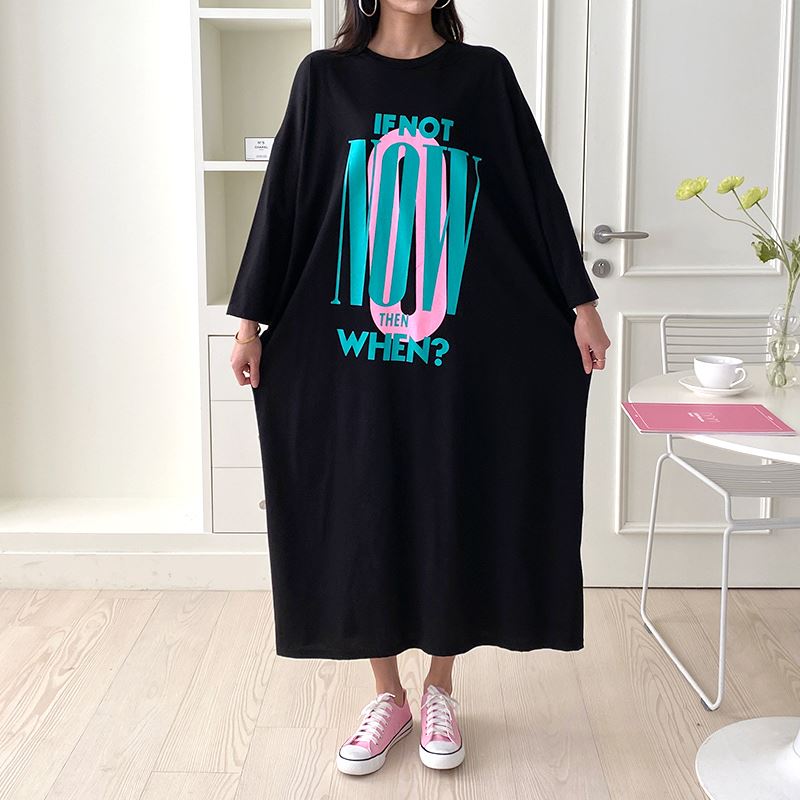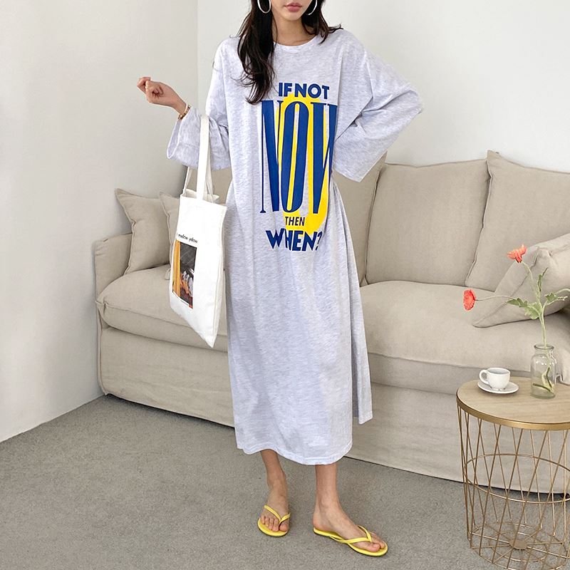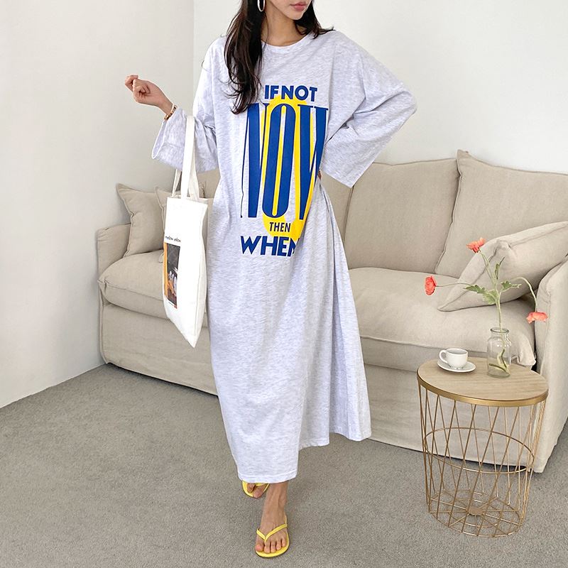 • 여성 데일리 롱 원피스 여름 긴팔 그래픽 레터링(나우OPS)