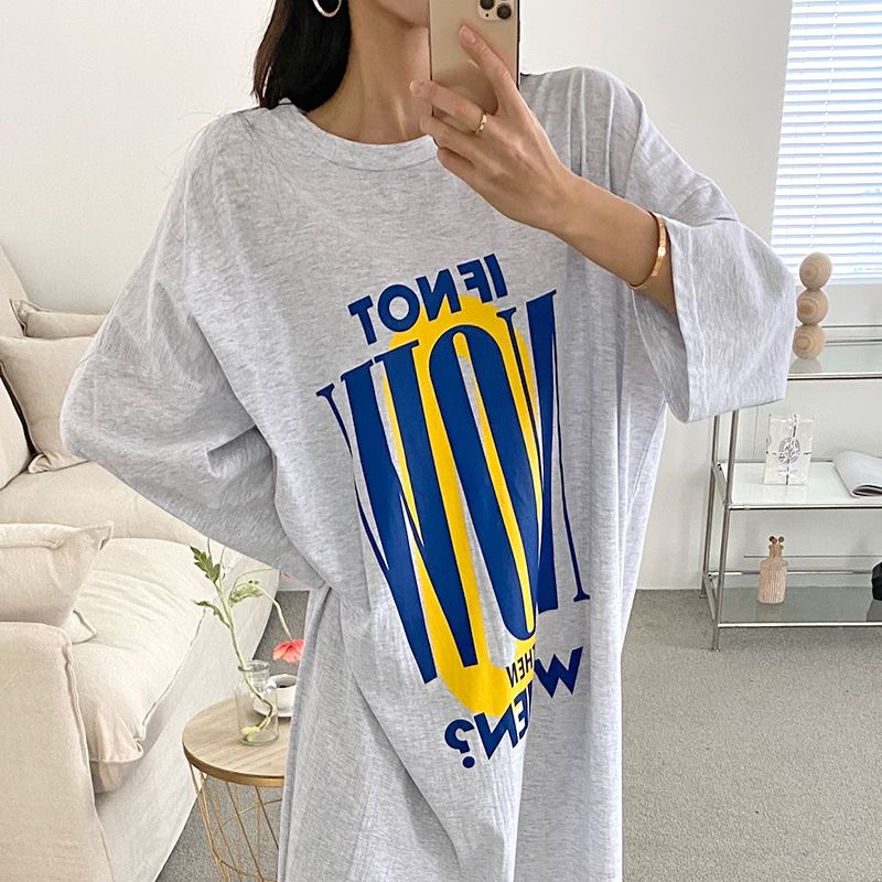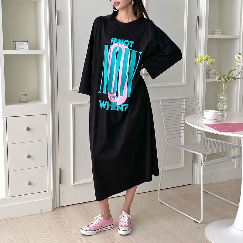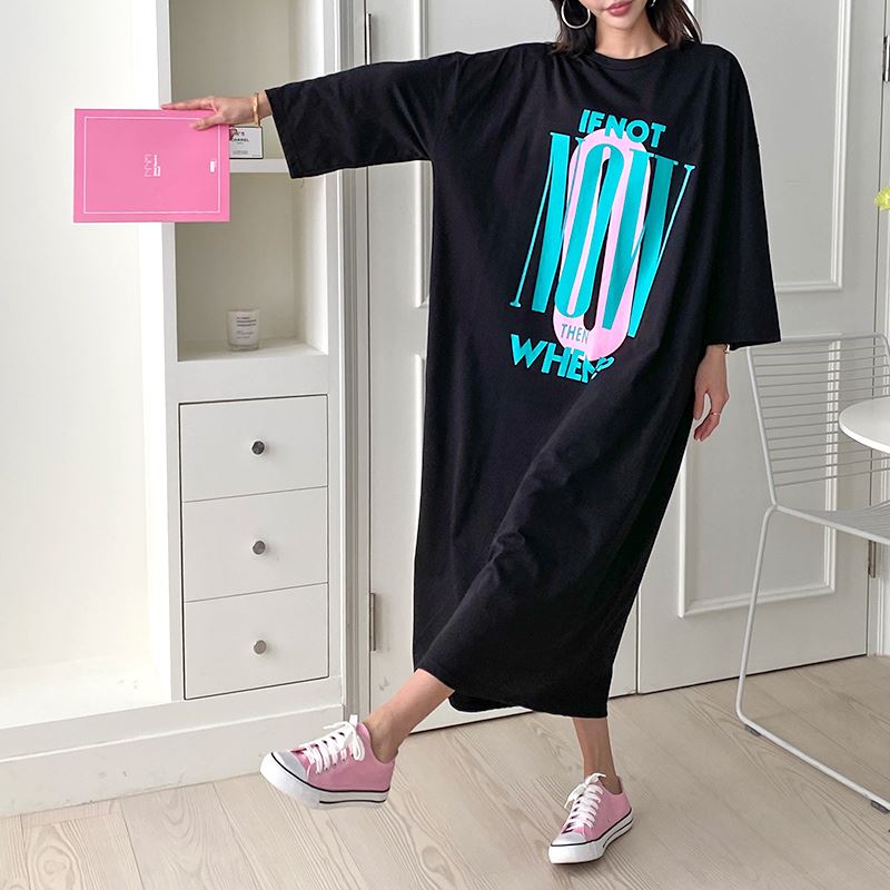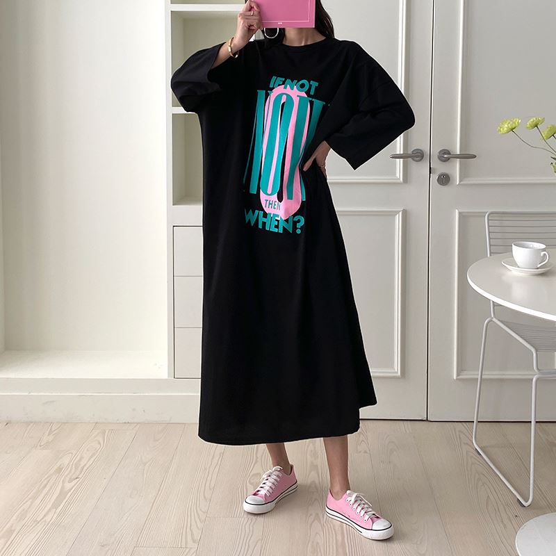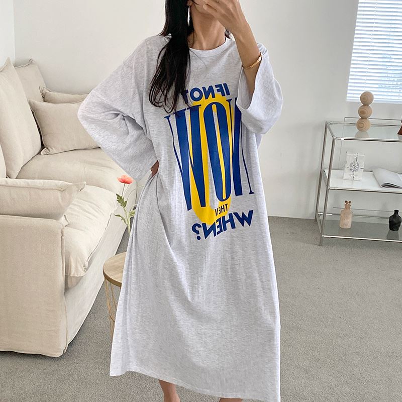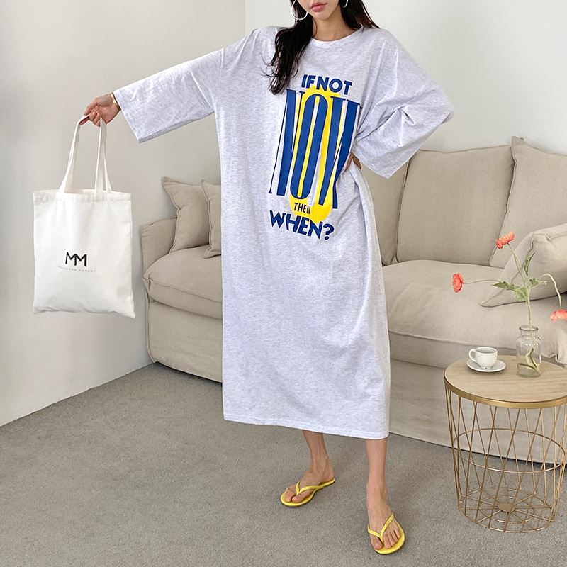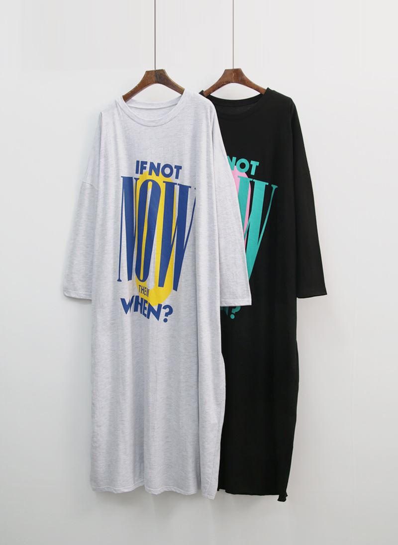 • 여성 데일리 롱 원피스 여름 긴팔 그래픽 레터링(나우OPS)