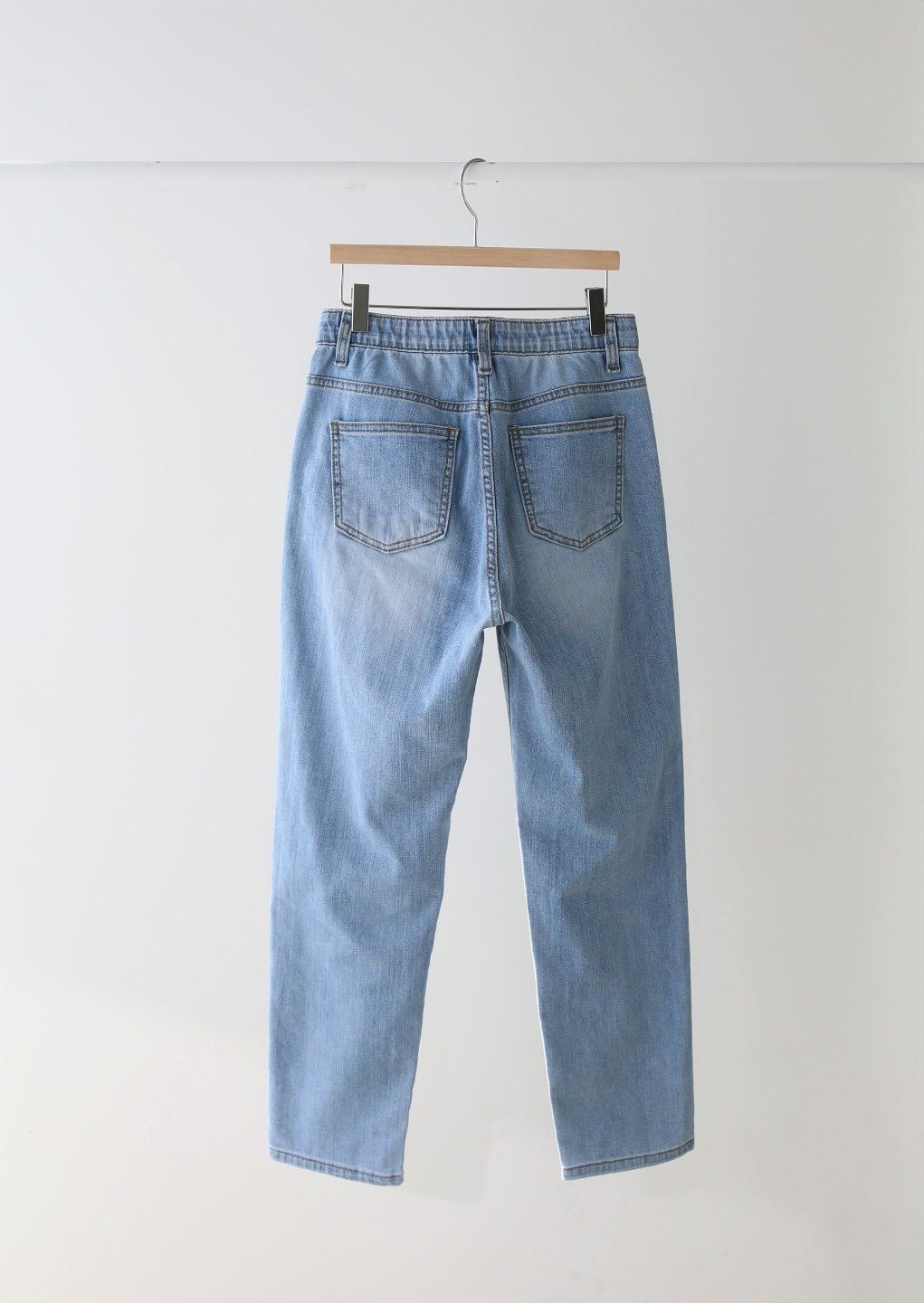 • 여성 썸머 청바지 배기 데님 연청 허리 밴딩