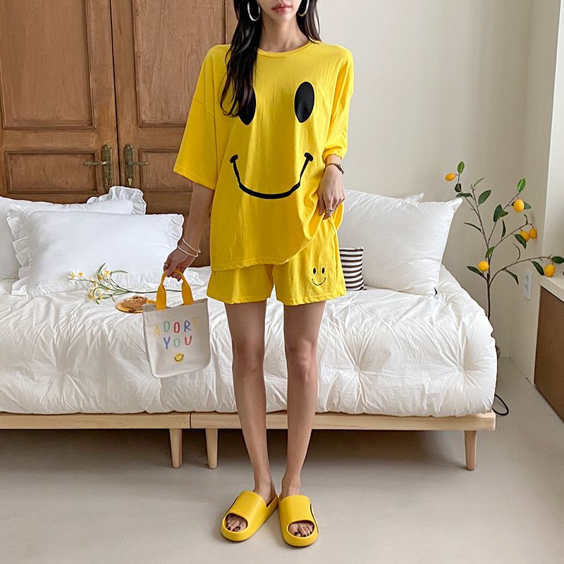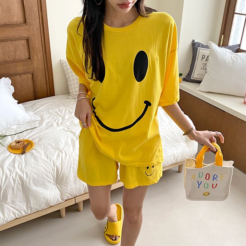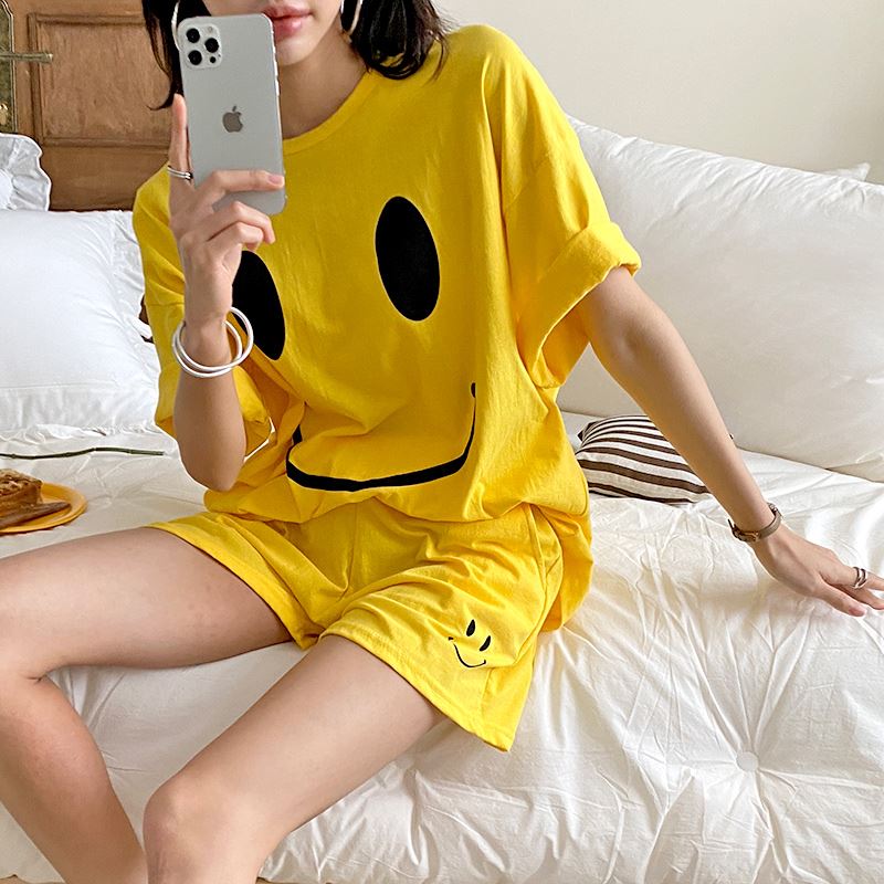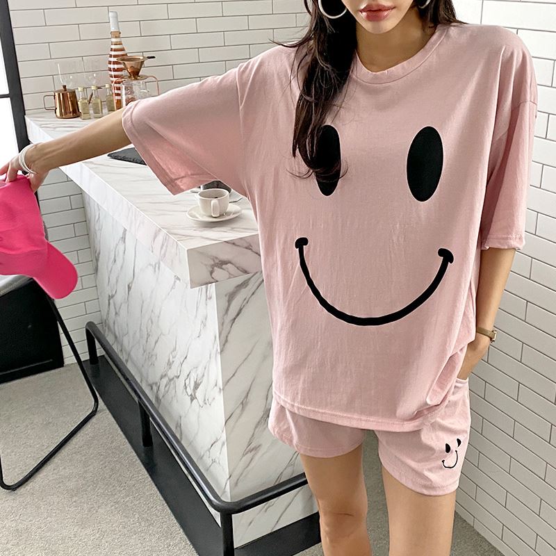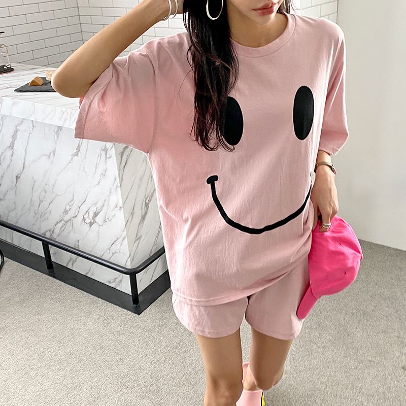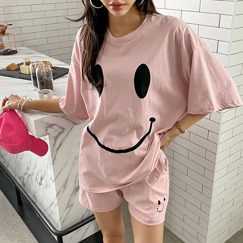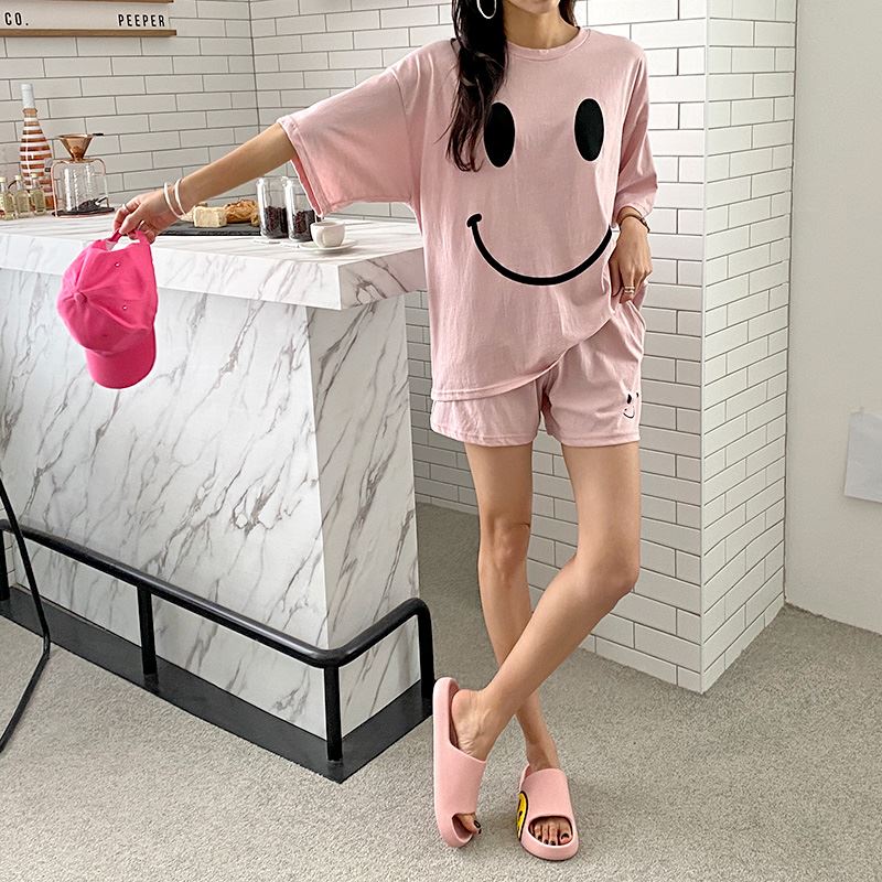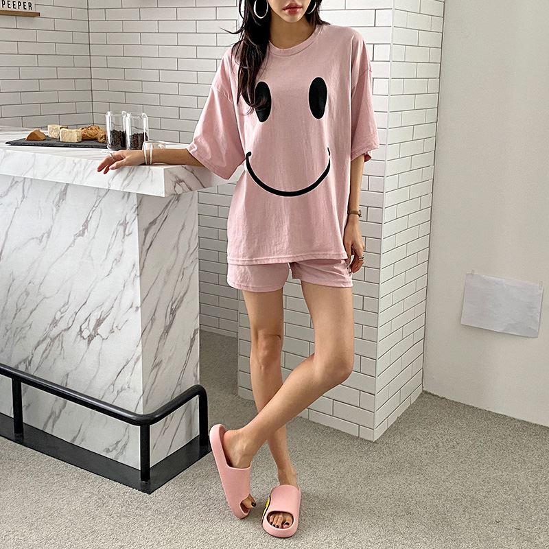 • 여자 여름 반바지 반팔 홈웨어 세트 라운지웨어 스마일