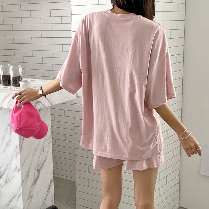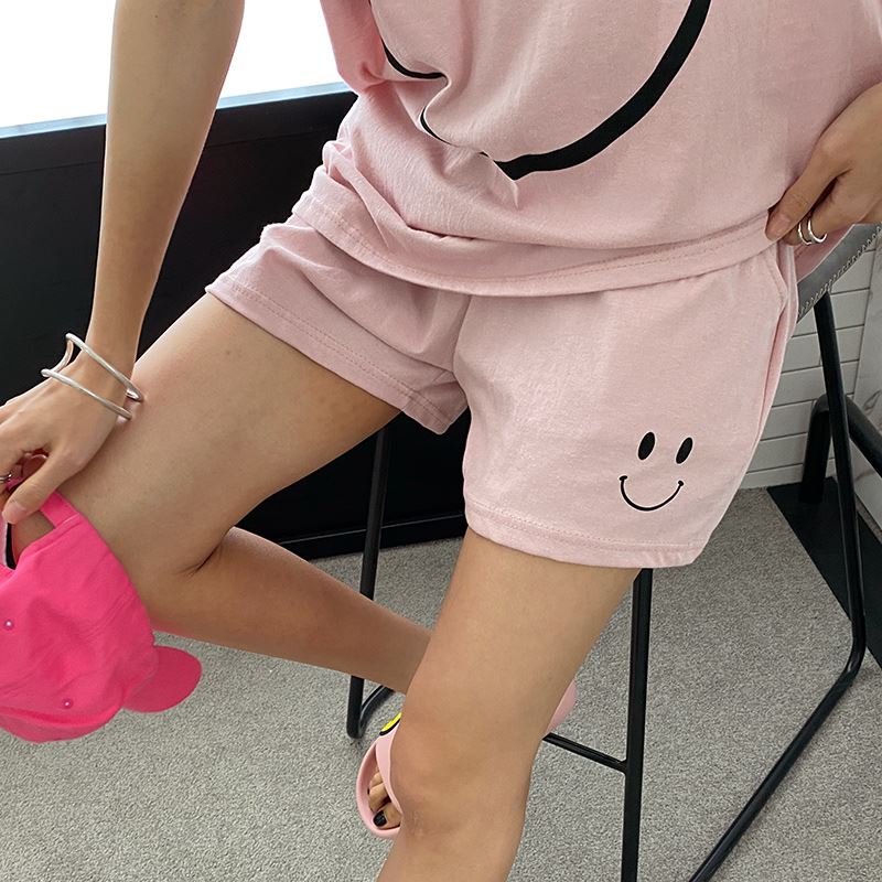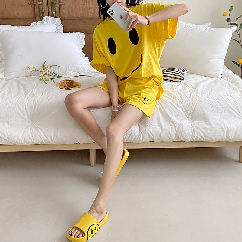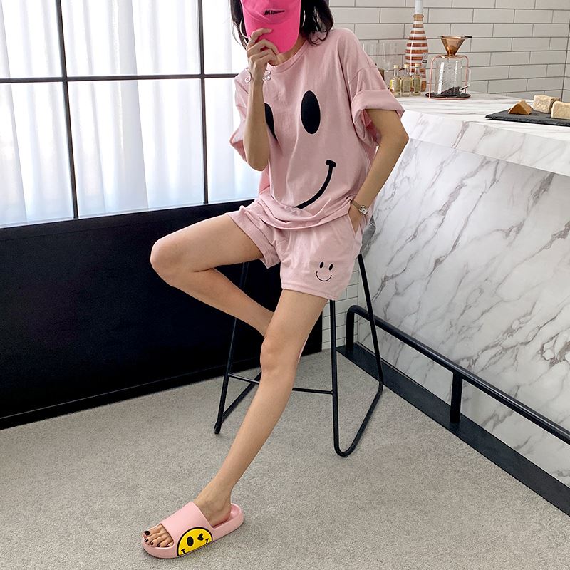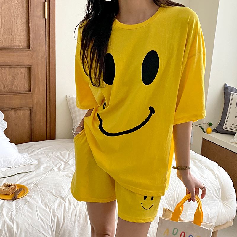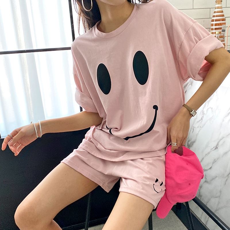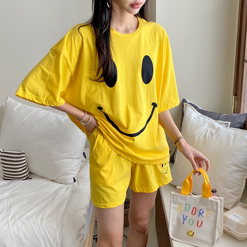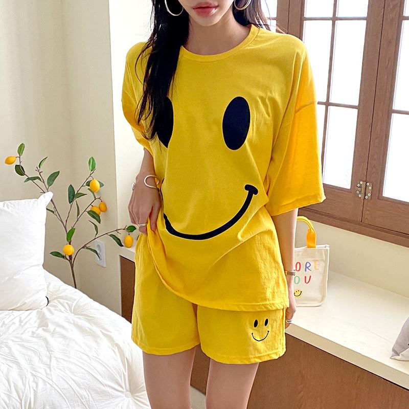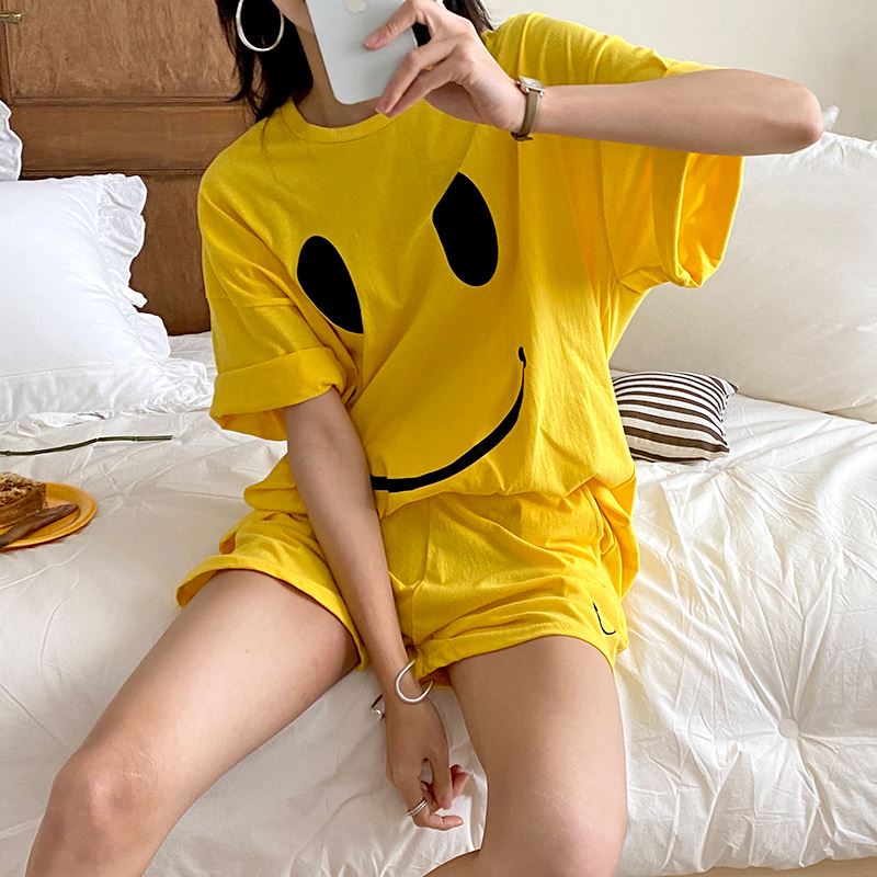 • 여자 여름 반바지 반팔 홈웨어 세트 라운지웨어 스마일