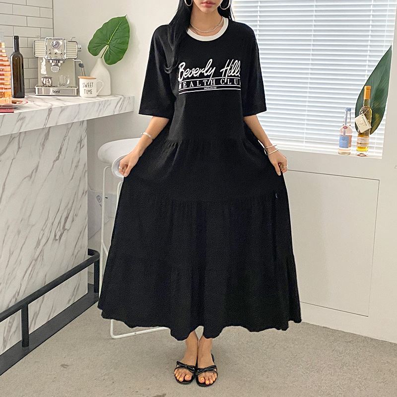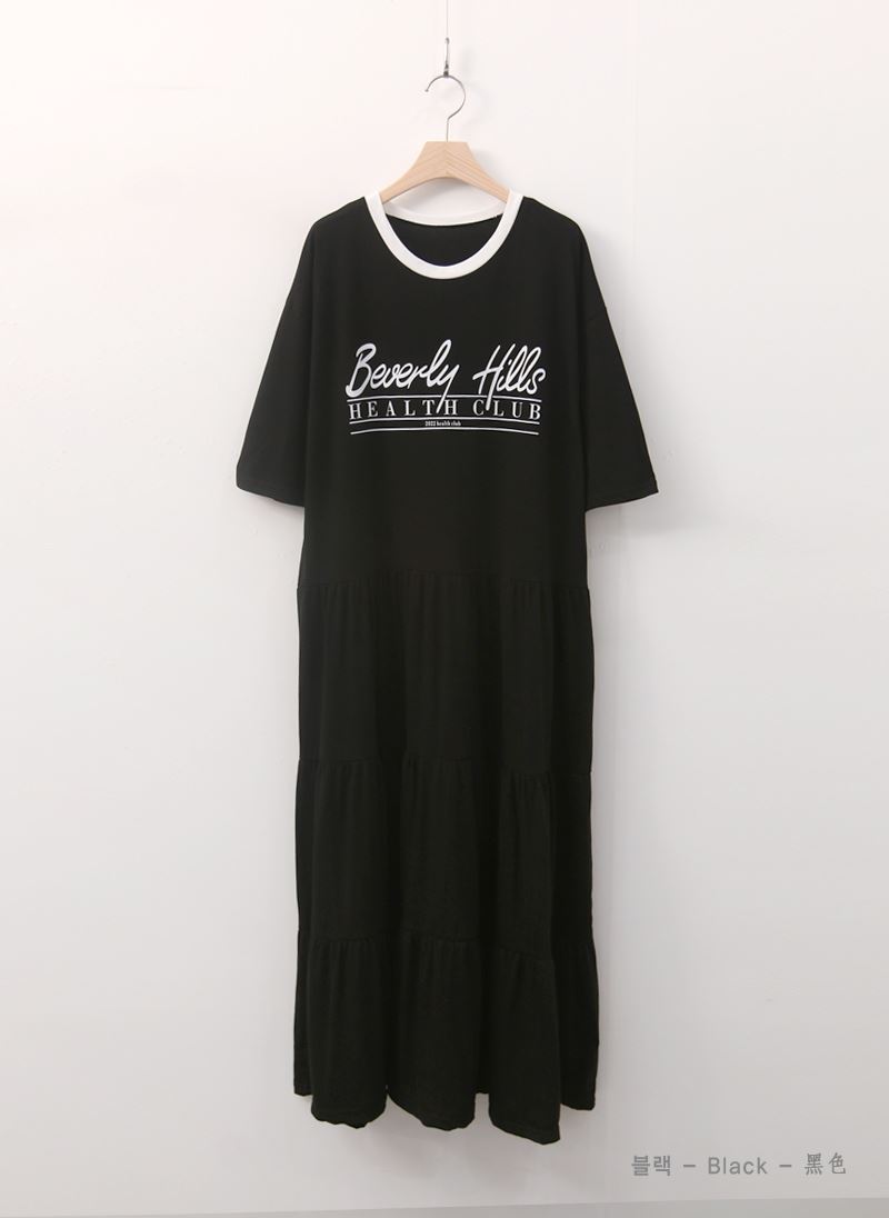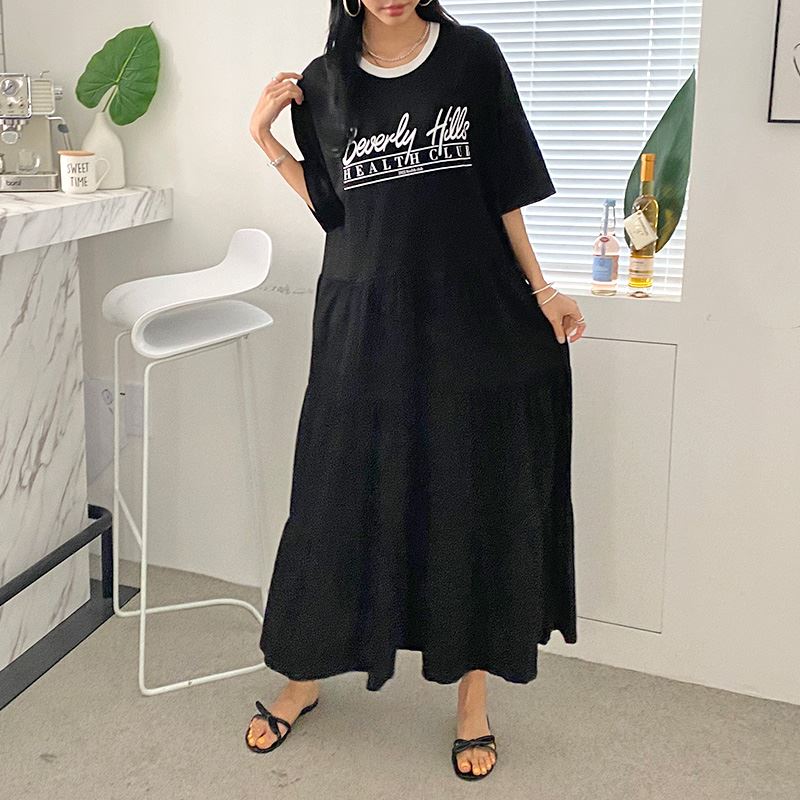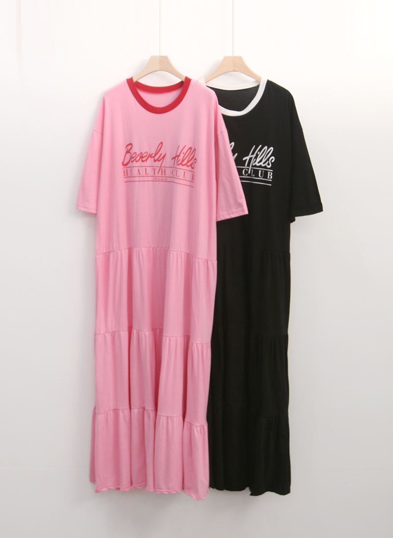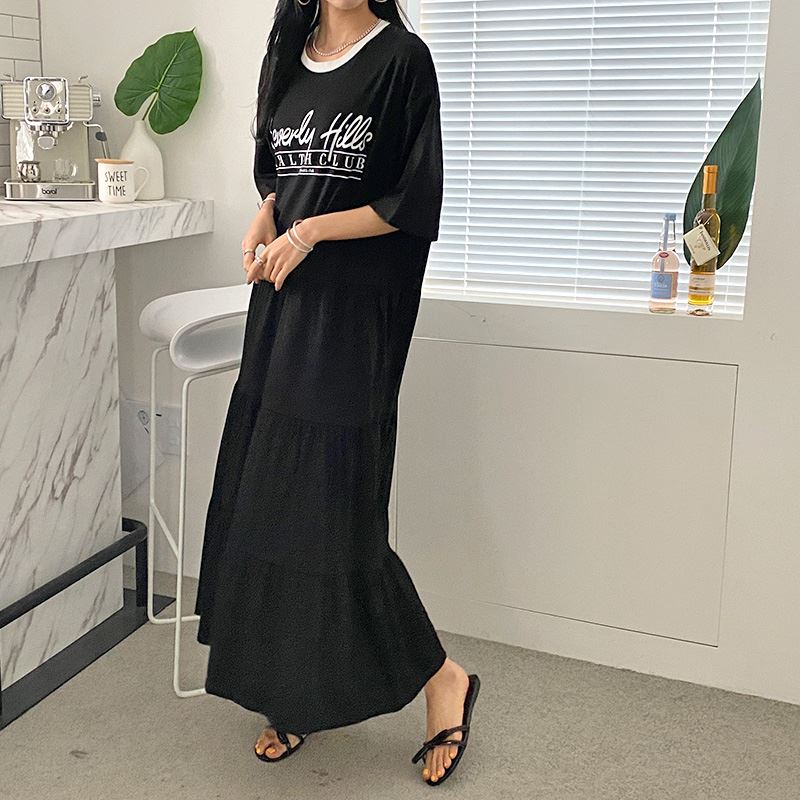 • 여자 플리츠 롱 원피스 레터링 데일리룩(힐스배색OPS)