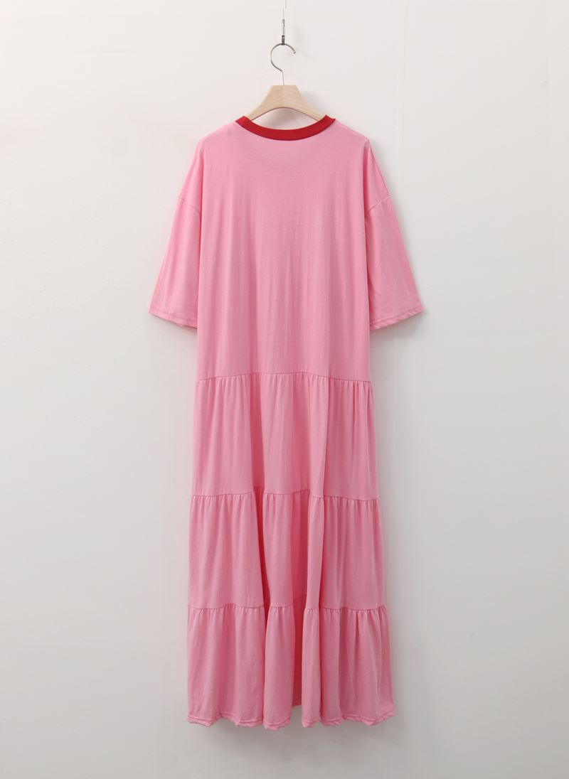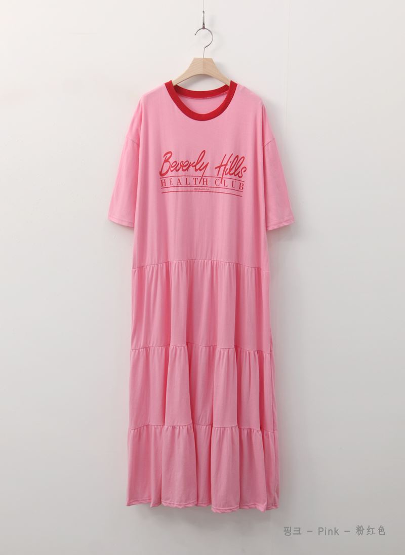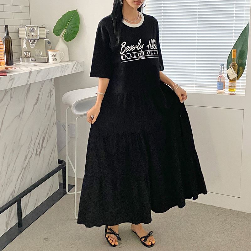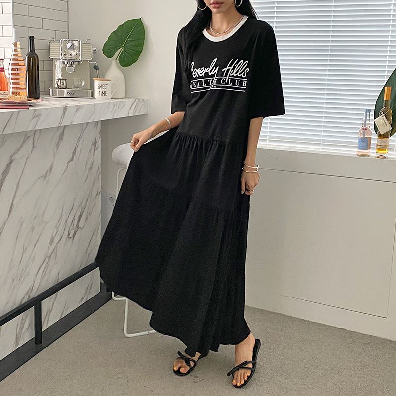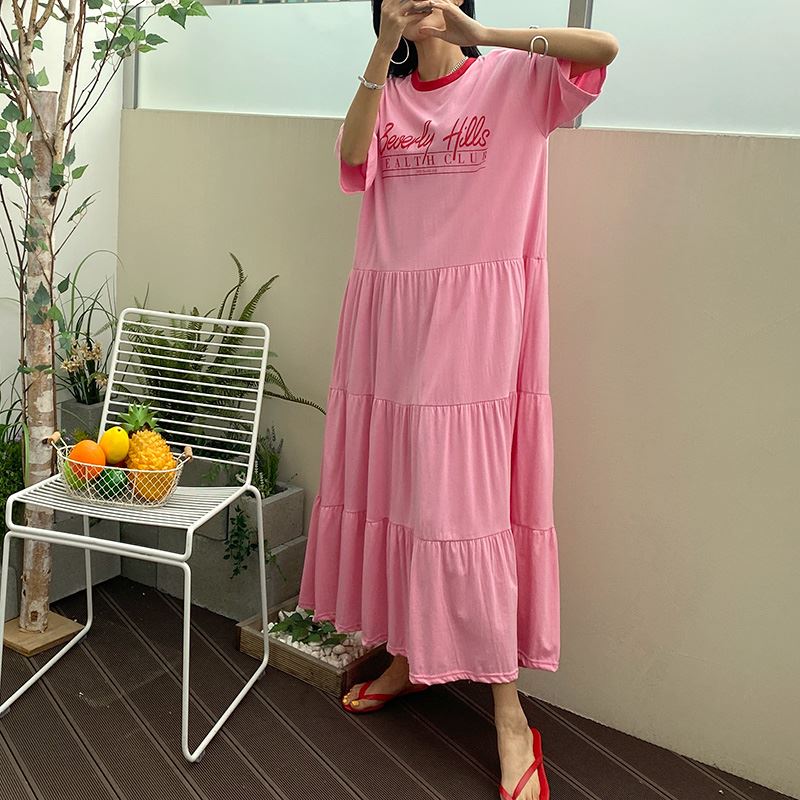 • 여자 플리츠 롱 원피스 레터링 데일리룩(힐스배색OPS)