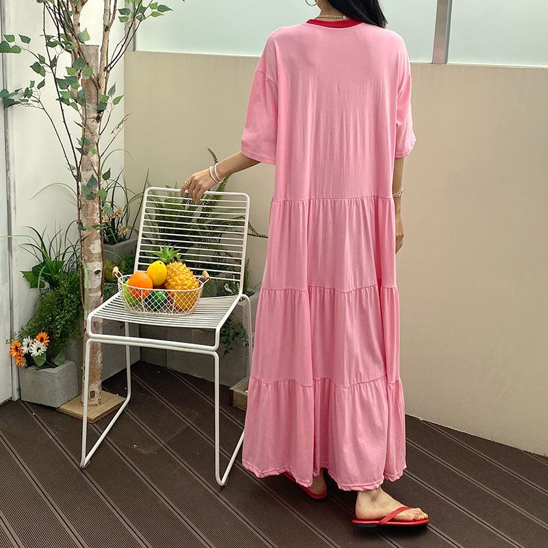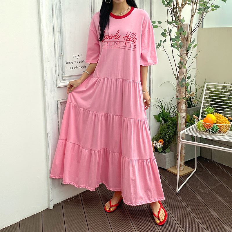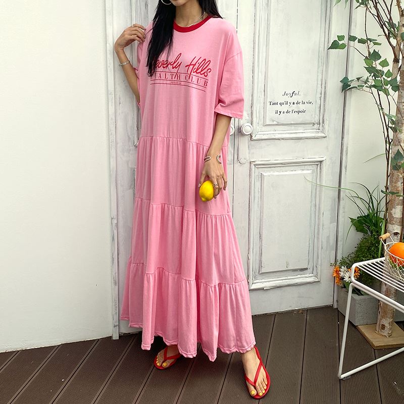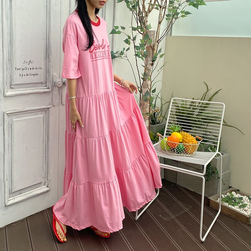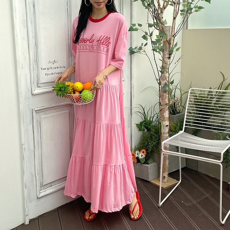 • 여자 플리츠 롱 원피스 레터링 데일리룩